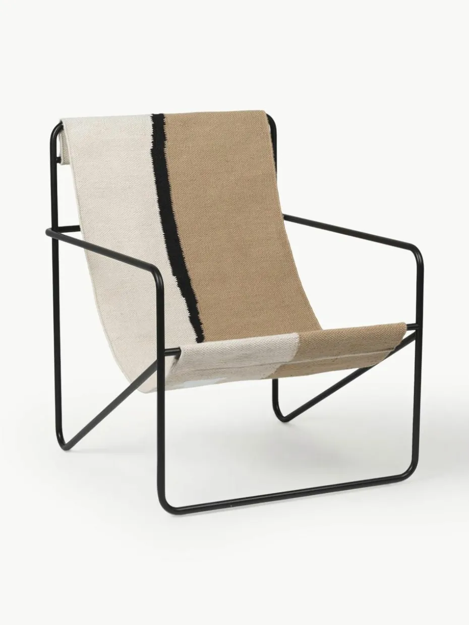 Der Desert Loungesessel ist ein modernistischer Stuhl mit einem anmutigen Profil. Er besteht aus einem röhrenförmigen Gestell mit einem austauschbaren gewebten Sitz, der vollständig aus recyceltem, zu PET-Garnen gesponnenen Kunststoff besteht.