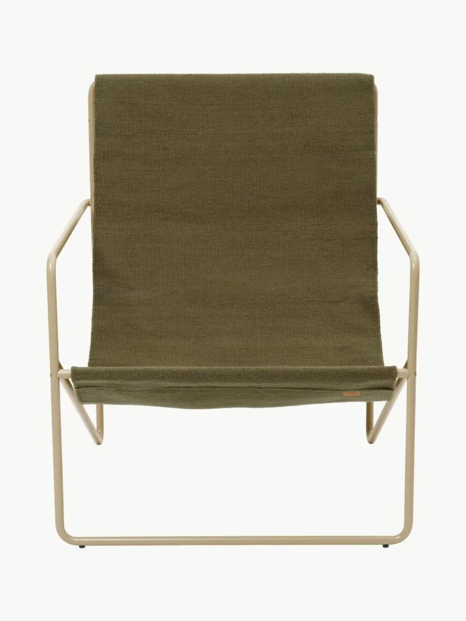 Der Desert Loungesessel ist ein modernistischer Stuhl mit einem anmutigen Profil. Er besteht aus einem röhrenförmigen Gestell mit einem austauschbaren gewebten Sitz, der vollständig aus recyceltem, zu PET-Garnen gesponnenen Kunststoff besteht.