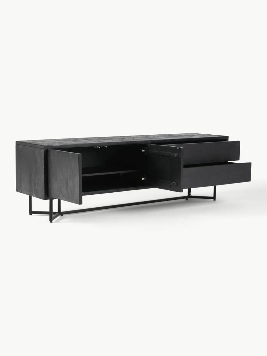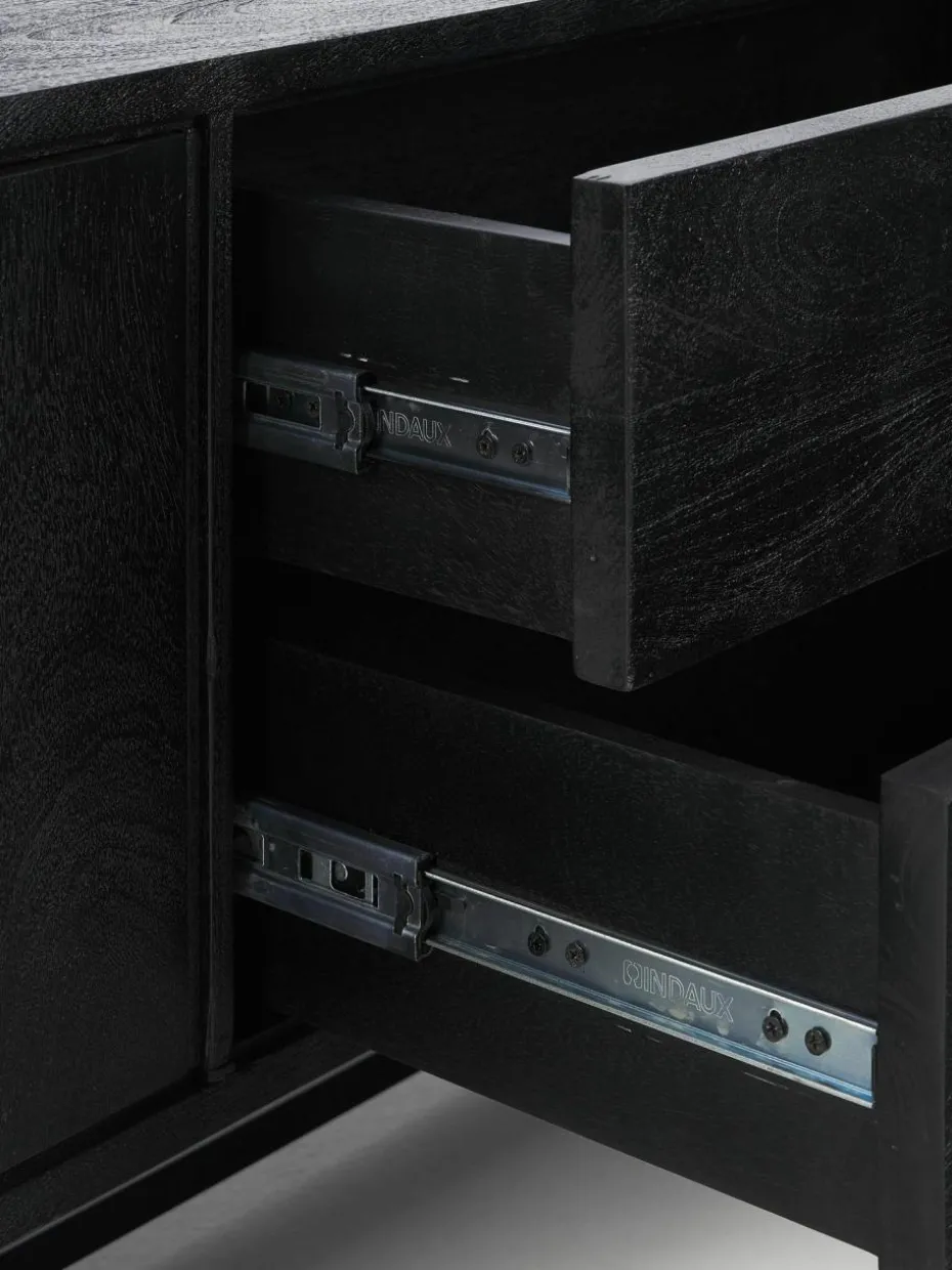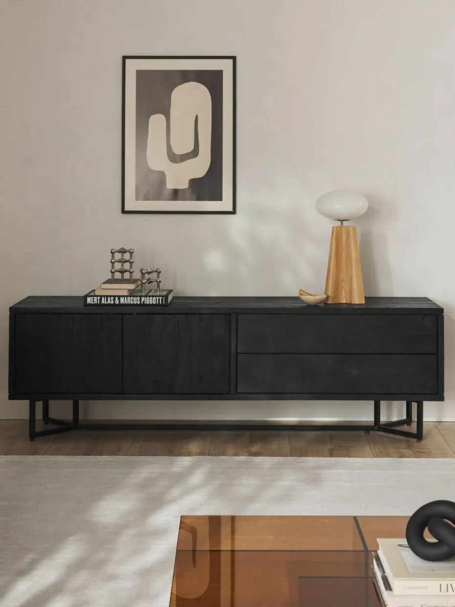 Das Lowboard verfügt über zwei Schubladen und zwei Fächer.