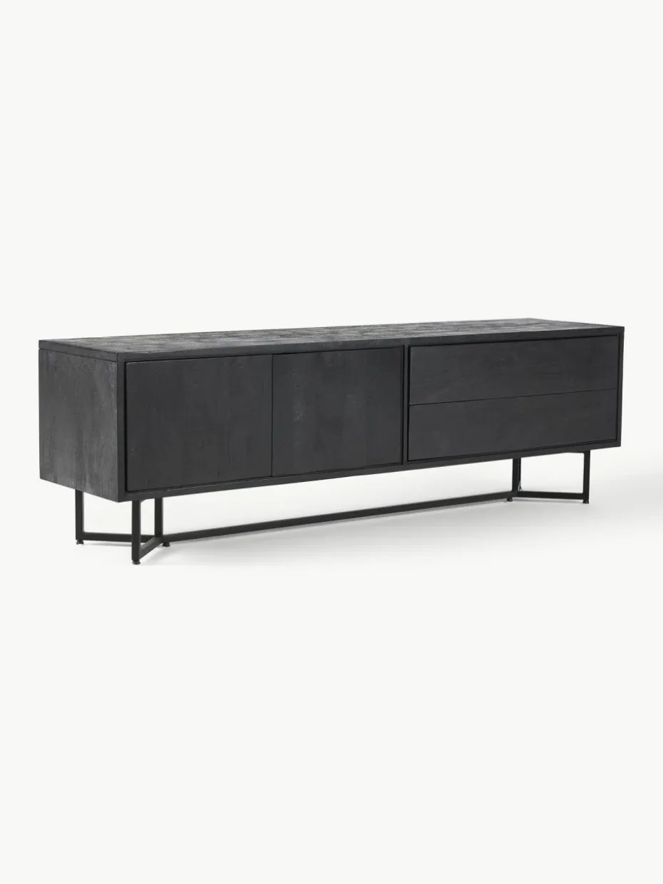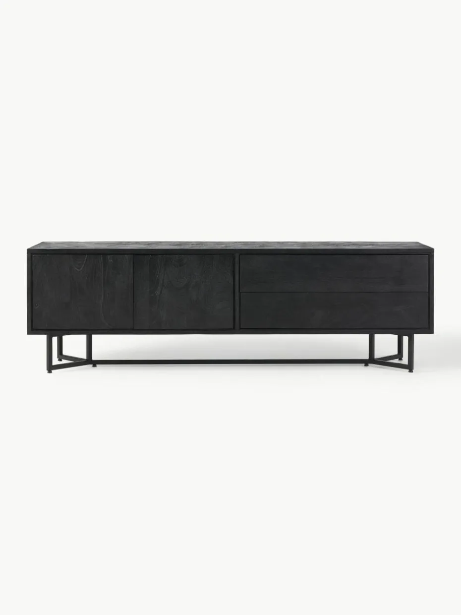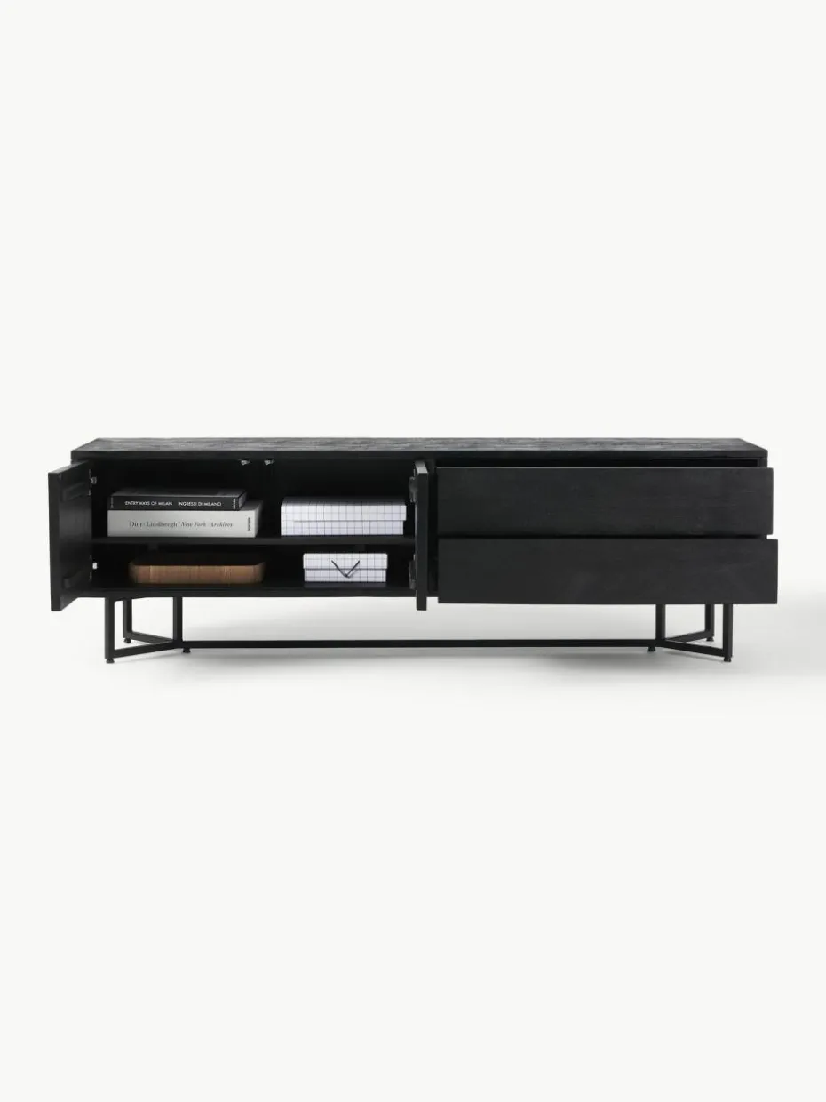 Das Lowboard verfügt über zwei Schubladen und zwei Fächer.