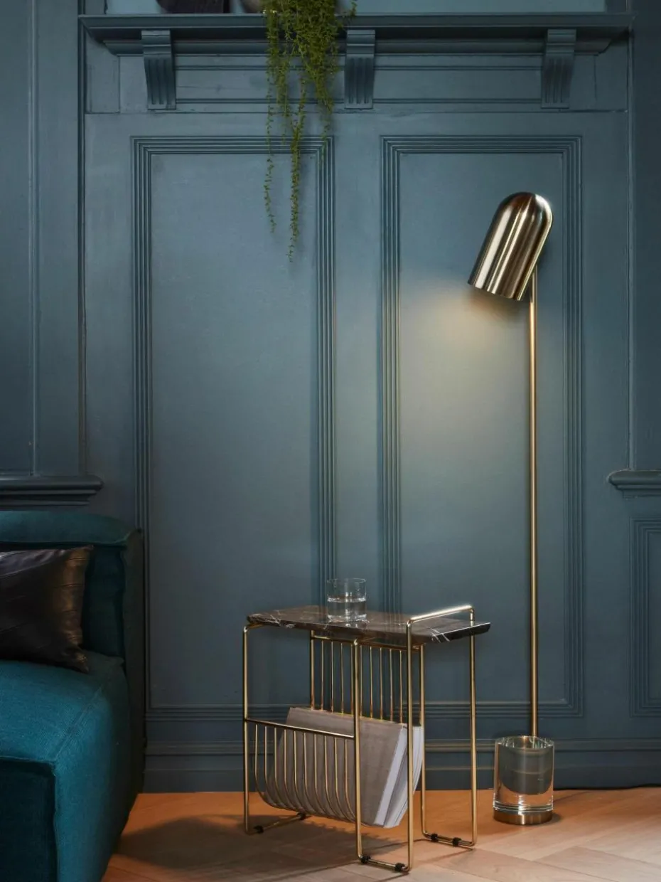 Der Beistelltisch verfügt über einen integrierten Magazinhalter. „,“pdp_care_label“:“Das Produkt wird platzsparend verpackt geliefert und kann nach Montage der Beine sofort verwendet werden.