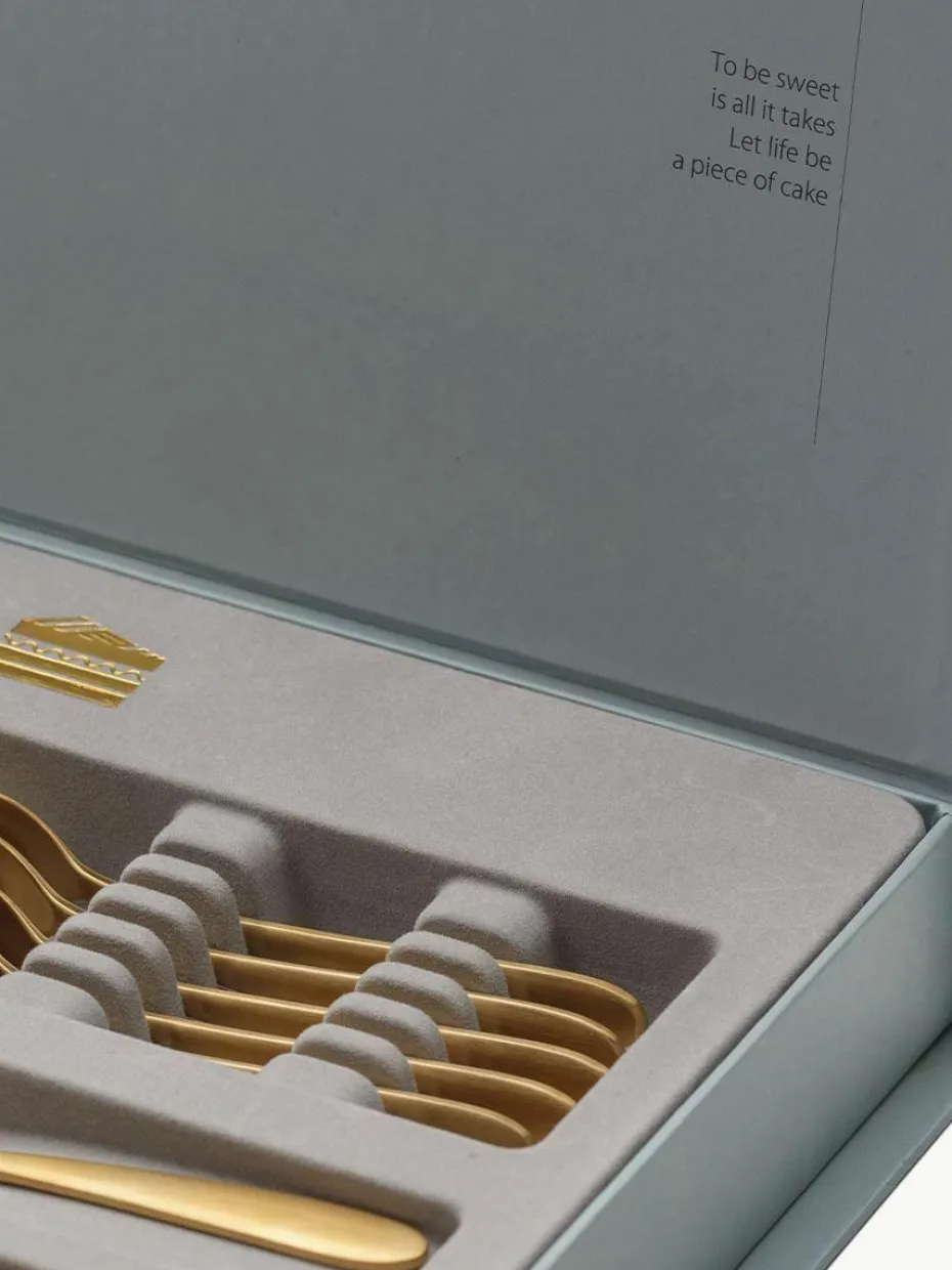 Dieses 13-teilige Besteck-Set besteht aus je sechs Kuchengabeln, Kaffeelöffeln und einem Tortenheber.“,“pdp_care_label“:“Von Hand spülen
