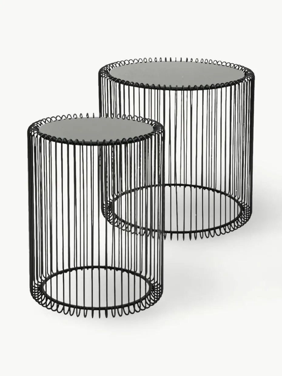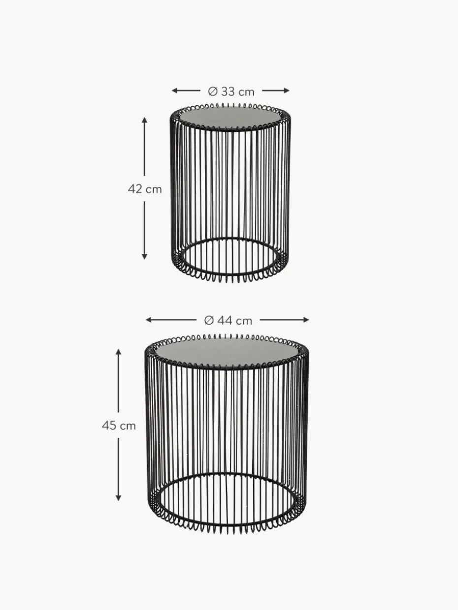 Metall-Beistelltische Wire mit Glasplatte, 2er-Set