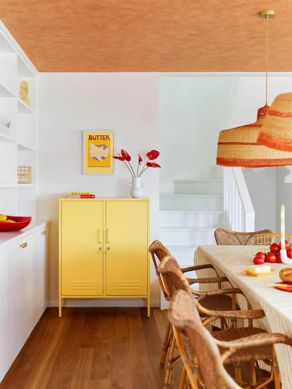 Das Highboard verfügt über sechs Fächer.