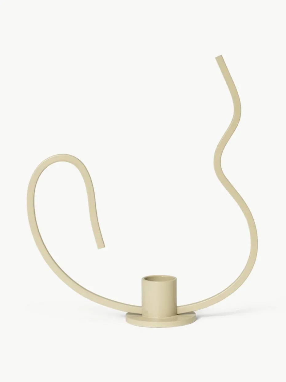 Der VALSEKerzenhalter hat eine fließende und wellenförmige Form, ganz so, als wäre er während des Tanzens erstarrt. Dieses aus pulverbeschichtetem Eisen gefertigte Stück ist von den anmutigen Bewegungen des Walzertanzes inspiriert und hat eine elegante Form mit einem geschwungenen Metallstab.