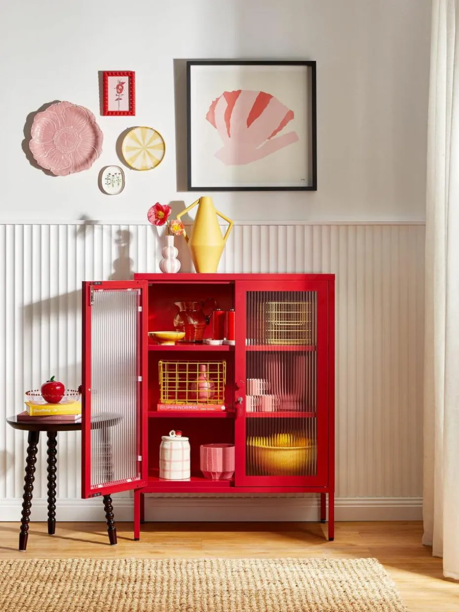 Metall-Vitrine The Mixer mit geriffeltem Glas