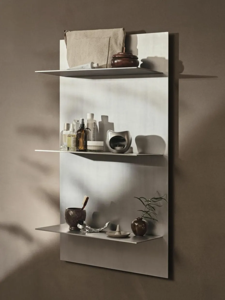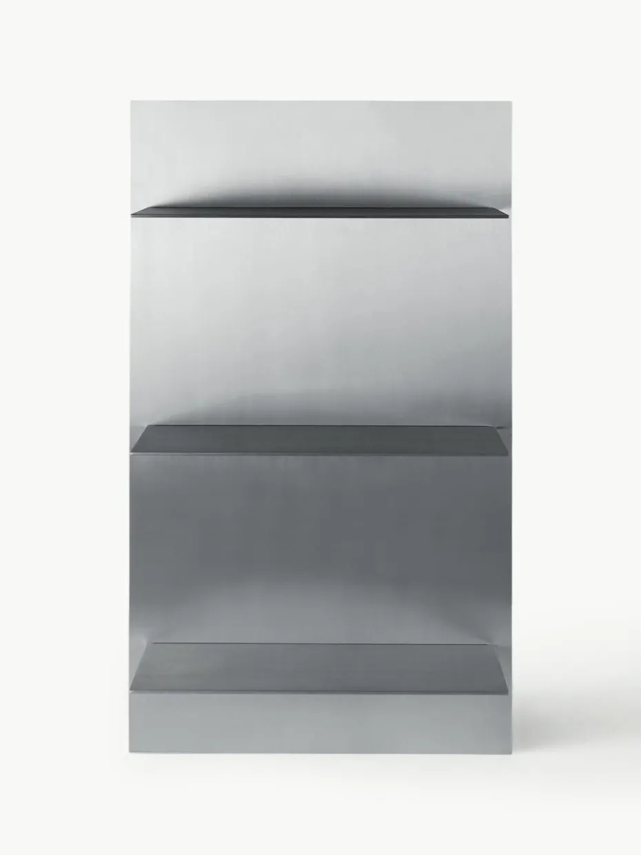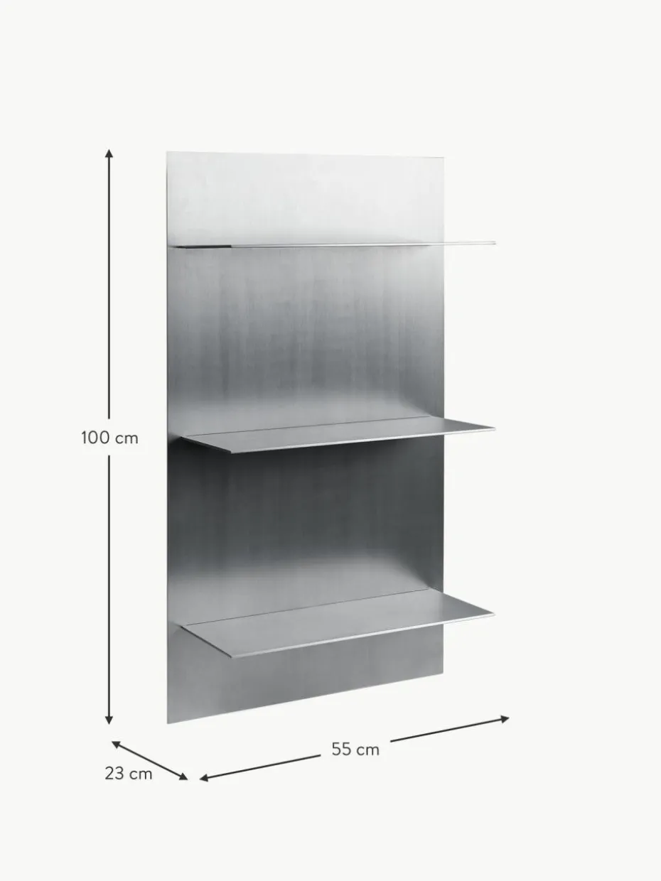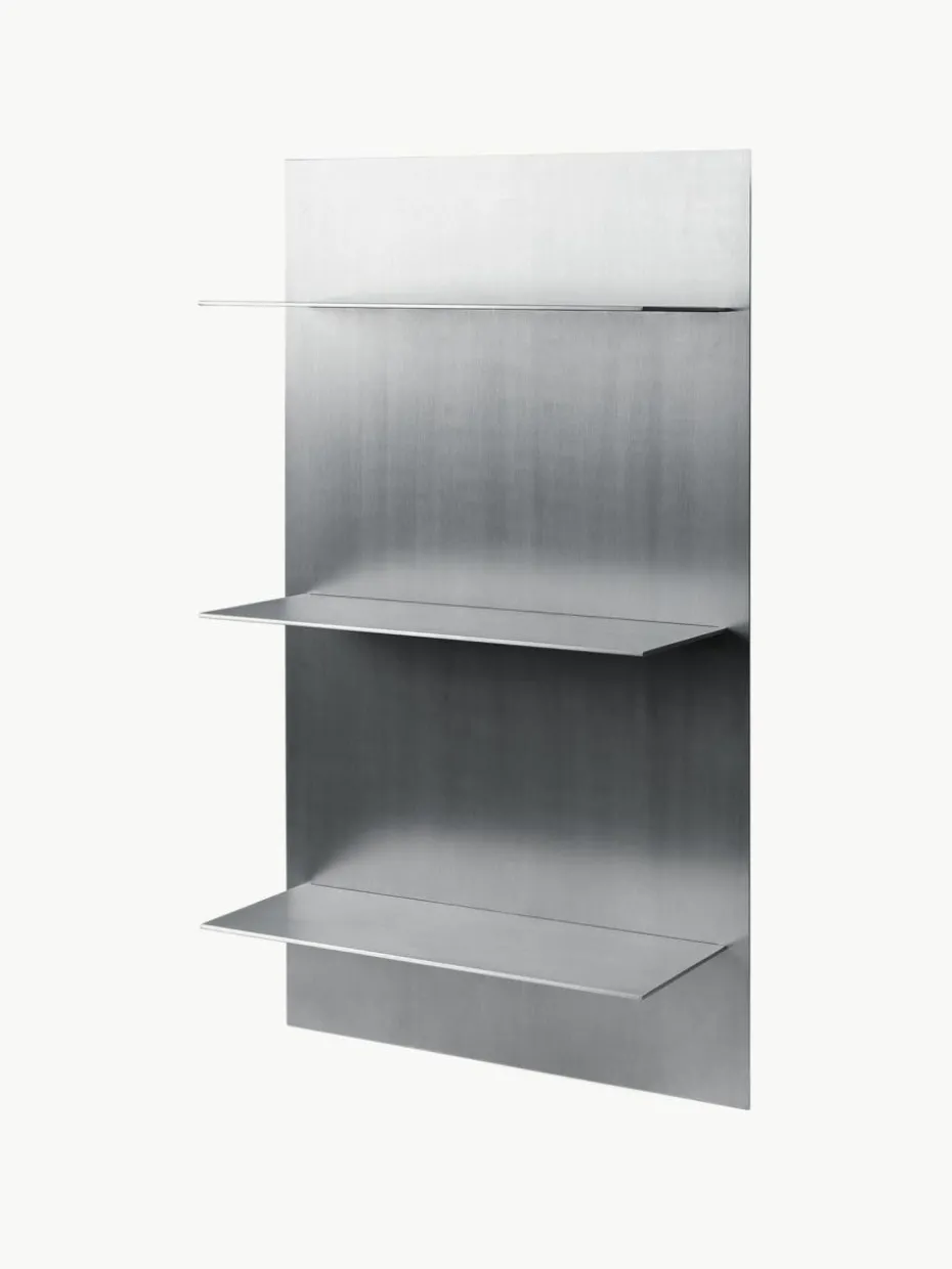 Das Lager Wandregal, das von der groben und industriellen Ästhetik des Brutalismus inspiriert ist, bietet eine elegante und funktionale Aufbewahrungsmöglichkeit. Das Produkt kann einfach an der Wand montiert werden – und dank der gleichmäßigen Abstände zwischen den Regalböden können mehrere Regale übereinandergestellt werden – perfekt für eine einheitliche und hohe Bibliothekswand.