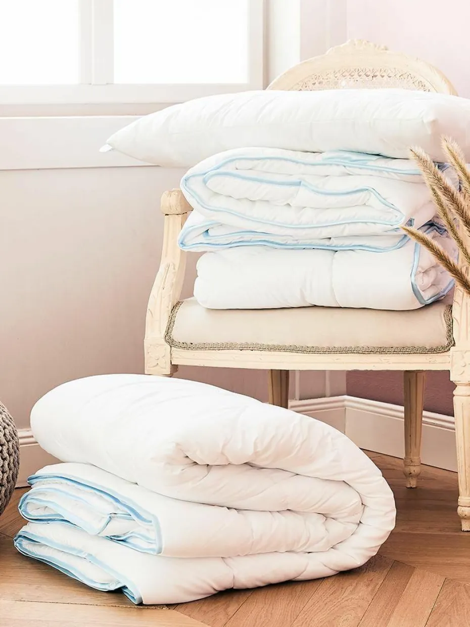 Nicht zu warm und nicht zu kalt – diese Decke ist ideal für Menschen mit durchschnittlichem Wärmebedürfnis und besonders für die milderen Jahreszeiten wie Frühjahr und Herbst oder auch als leichte Ganzjahresdecke geeignet.
