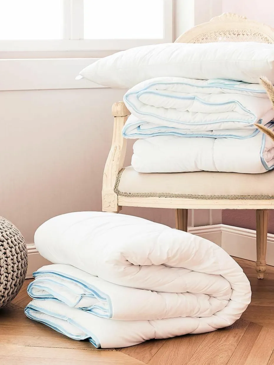 Diese Decke besteht aus zwei Einzeldecken mit leichtem/extra leichtem Wärmegrad und ist somit perfekt für die ganzjährige Nutzung geeignet.