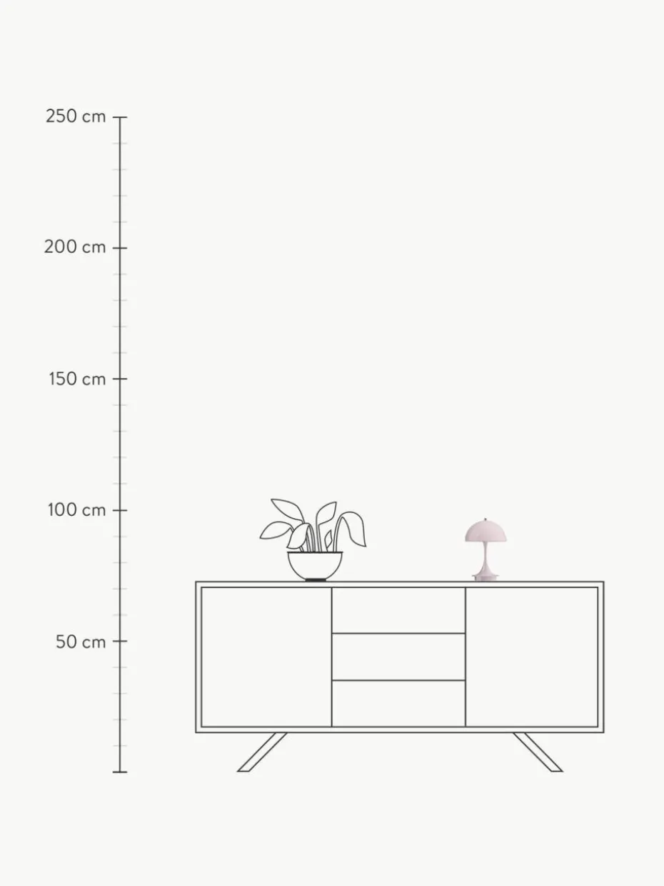 Die PANTHELLA wurde 1971 von Verner Panton in Zusammenarbeit mit Louis Poulsen entworfen. Ihr außergewöhnliches Design spiegelt nicht nur den verspielten Stil von Panton wider, sondern bietet dank der organischen Formen auch ein einzigartiges, angenehmes Licht. Der halbkugelförmige Schirm strahlt den größten Teil des Lichts nach unten ab, wo es von dem trompetenförmigen Fuß reflektiert wird und die Umgebung in ein weiches, diffuses Licht taucht.