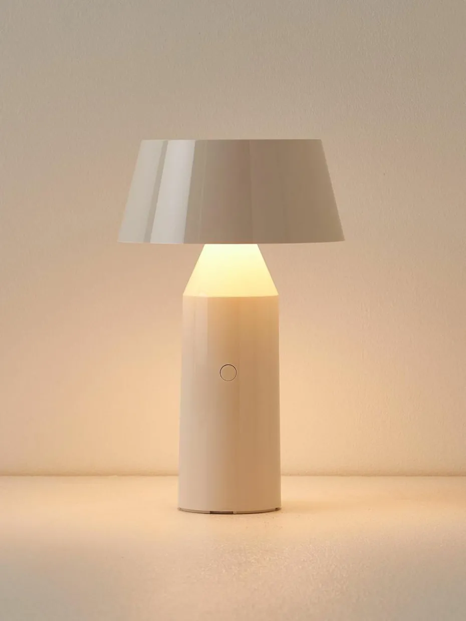 Entworfen von Christophe Mathieu im Jahr 2017. Die Bicoca wurde mit dem Optimismus geboren, das Leben zu erhellen und die guten Zeiten zu begleiten, egal wohin man geht. Diese farbenfrohe, leichte, tragbare Lampe projiziert ein intimes Licht, das all Deinen persönlichen Räumen Wärme verleiht. Bicoca beginnt mit einer Überlagerung grundlegender geometrischer Figuren und einem neigbaren Schirm zur Lichtlenkung. Bicoca ist klein, handlich, vielseitig und autonom.