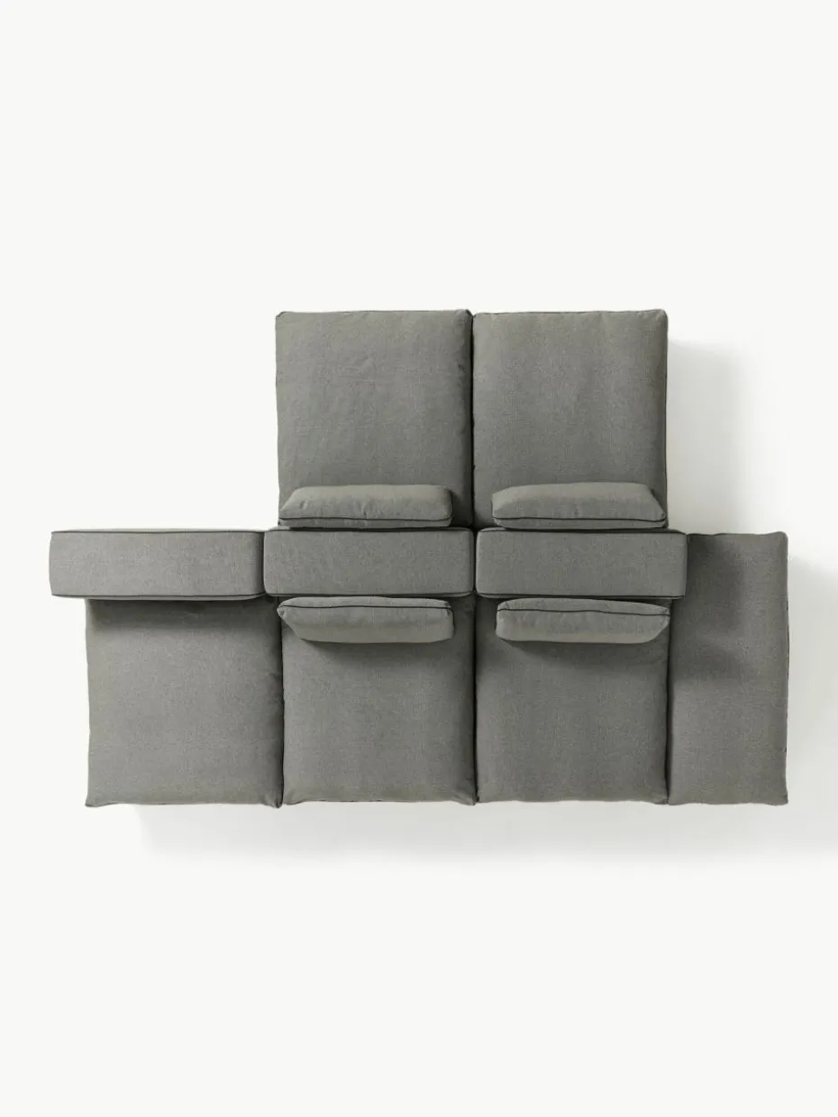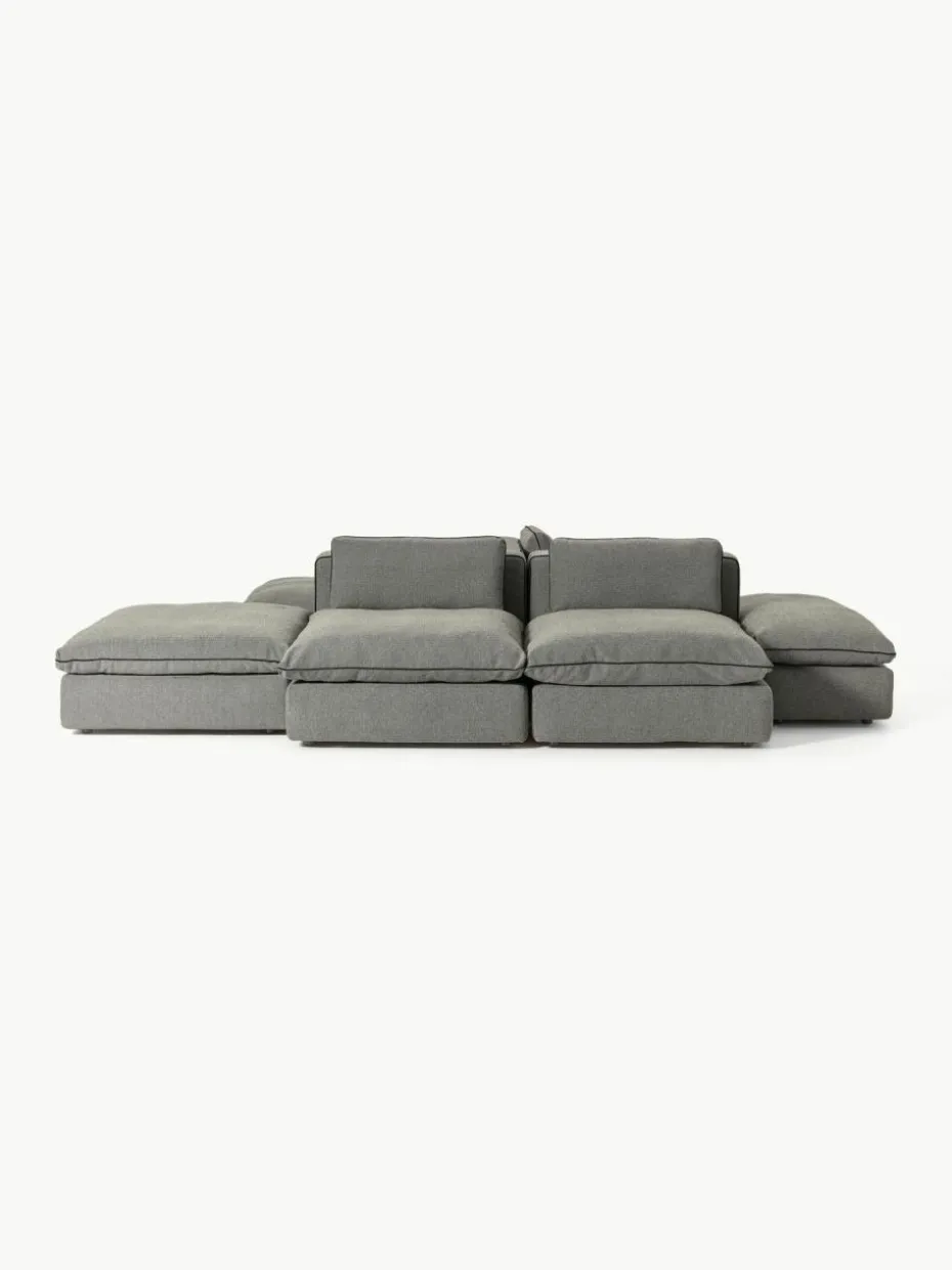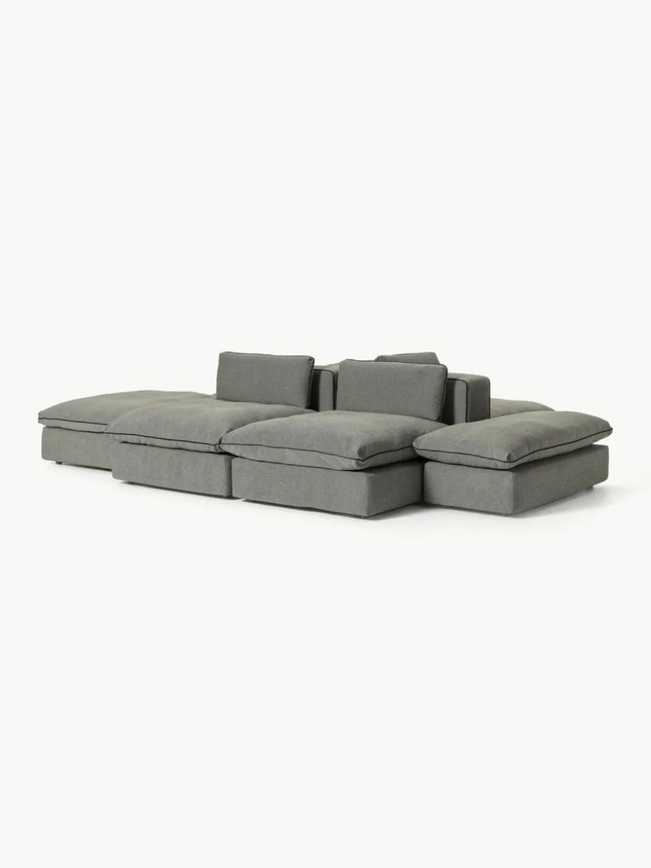 Unser modulares Sofa Felix besteht aus drei Modulen und vier Hockern, welche sich individuell kombinieren lassen.