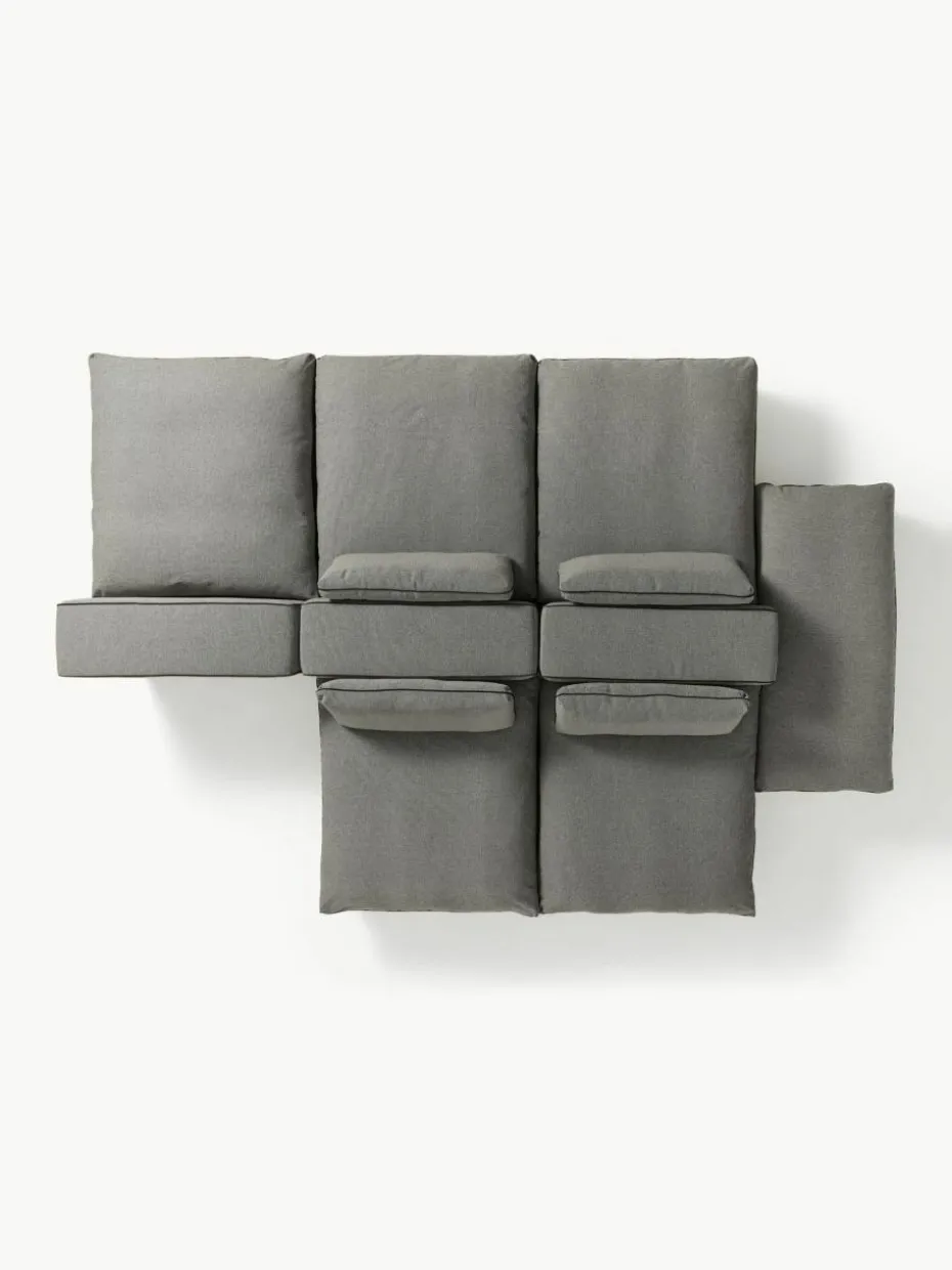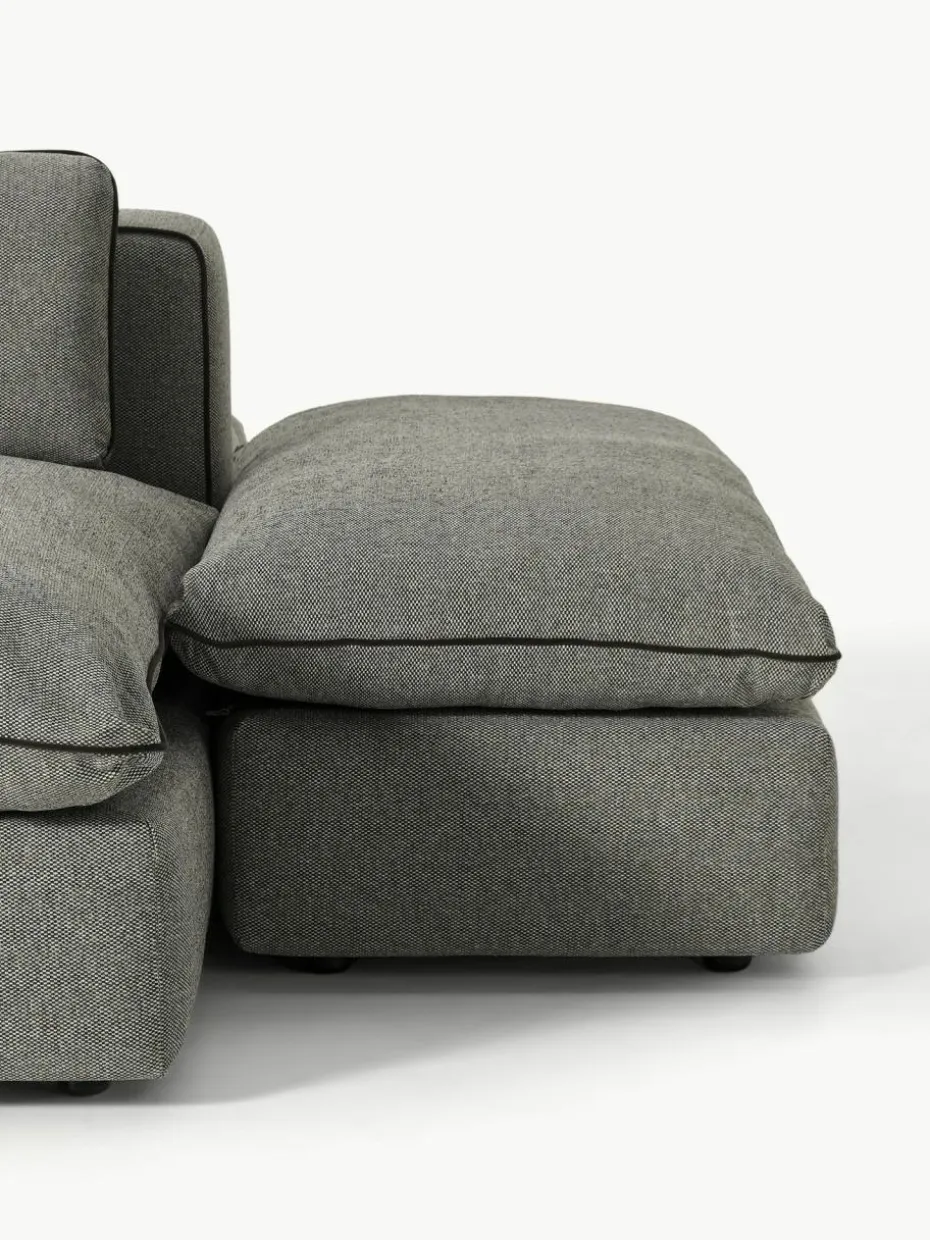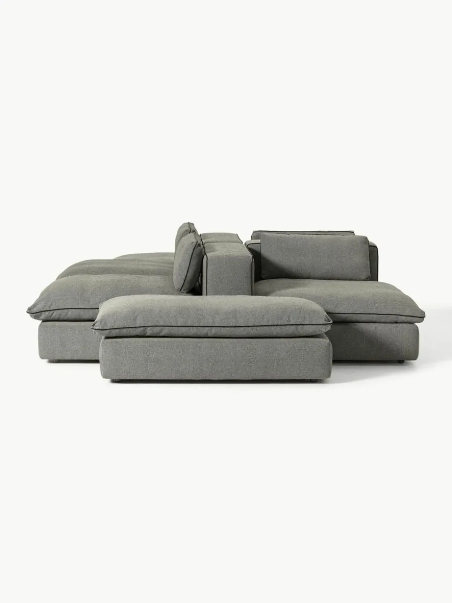 Unser modulares Sofa Felix besteht aus drei Modulen und vier Hockern, welche sich individuell kombinieren lassen.
