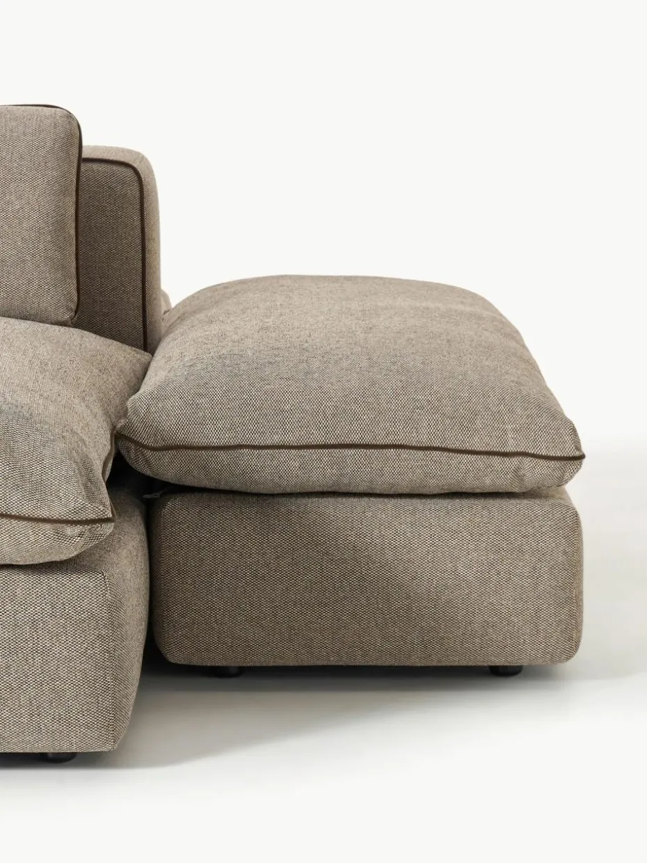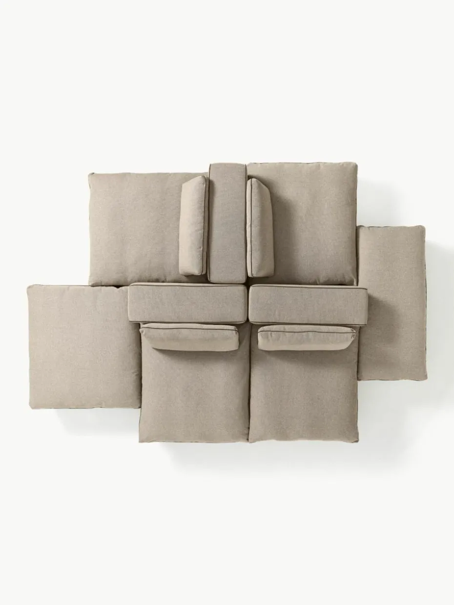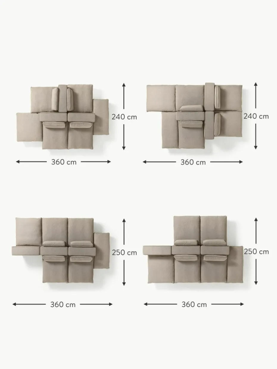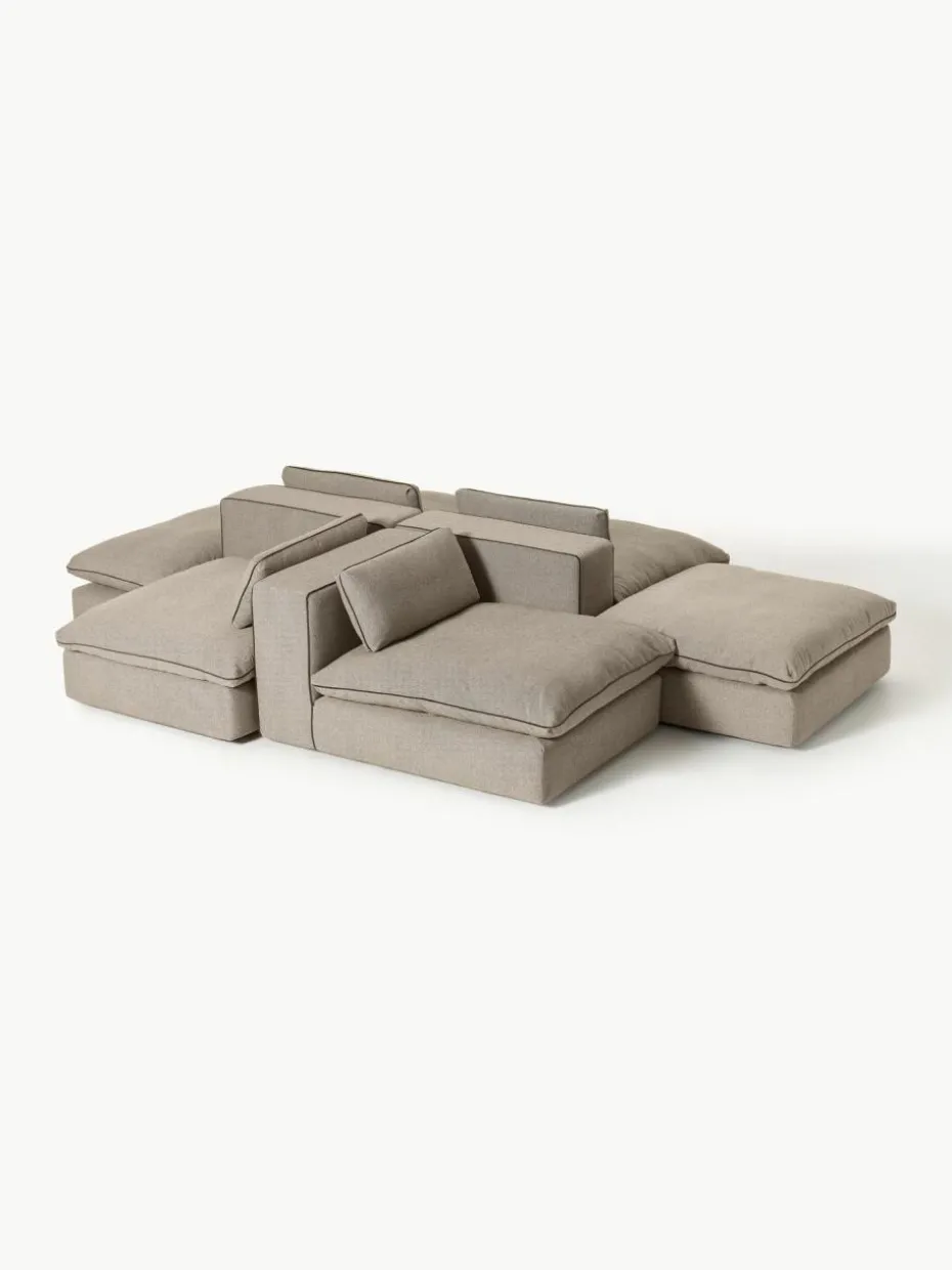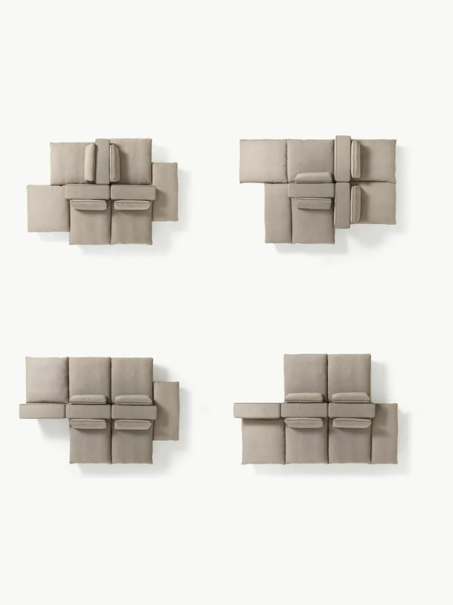 Unser modulares Sofa Felix besteht aus drei Modulen und vier Hockern, welche sich individuell kombinieren lassen.