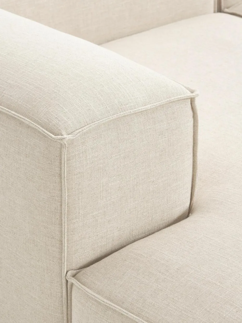Unsere modulare Sofaserie LENNON ist mit ihren verschiedenen Größen und Elementen die perfekte Wohlfühlinsel für gemütliche Momente zuhause. Ihre Markenzeichen, die niedrigen Arm-und Rückenlehnen sowie ihre weiche und tiefe Sitzfläche, sind perfekt zum Loungen und Entspannen. Das Gestell aus massivem Kiefernholz ist FSC-zertifiziert und auf Langlebigkeit ausgerichtet, eingenähte Schaumpolster mit Taschenfederkern garantieren die charakteristische Form. Dank einem easy Klicksystem kann es nach Belieben erweitert werden.