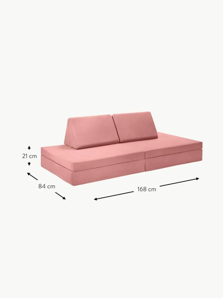 Wir stellen Dir den ultimativen Spielplatzbegleiter für Deine Kleinen vor – das Funzy Klappsofa! Dieses sorgfältig aus vier Schaumstoffteilen gefertigte Sofa– eine stabile Basis, ein Plüschkissen und zwei entzückende Dreieckskissen – ist mit waschbarem Stoff aus rutschfestem, weichem Samt überzogen und soll der Mittelpunkt für Spaß und Spannung sein. Die Funzy-Spielcouch ist nicht nur ein Möbelstück – sie ist ein Tor zu unbegrenzten Abenteuern und grenzenloser Freude!