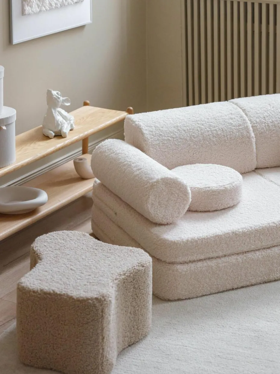 Das Wigiwama Sofa besteht aus neun Teilen und bietet eine perfekte Kombination mit grenzenlosem Potenzial für fantasievolles Spielen und Entspannen. Das Sofa ist nicht nur ein Möbelstück – es ist eine Einladung zur Welt voller Freude und Entdeckungen.