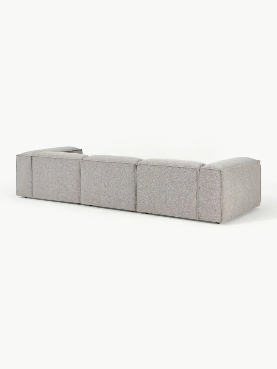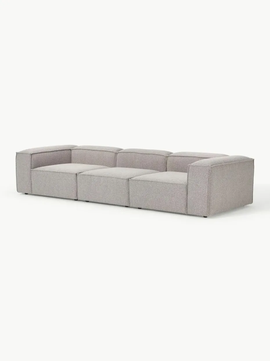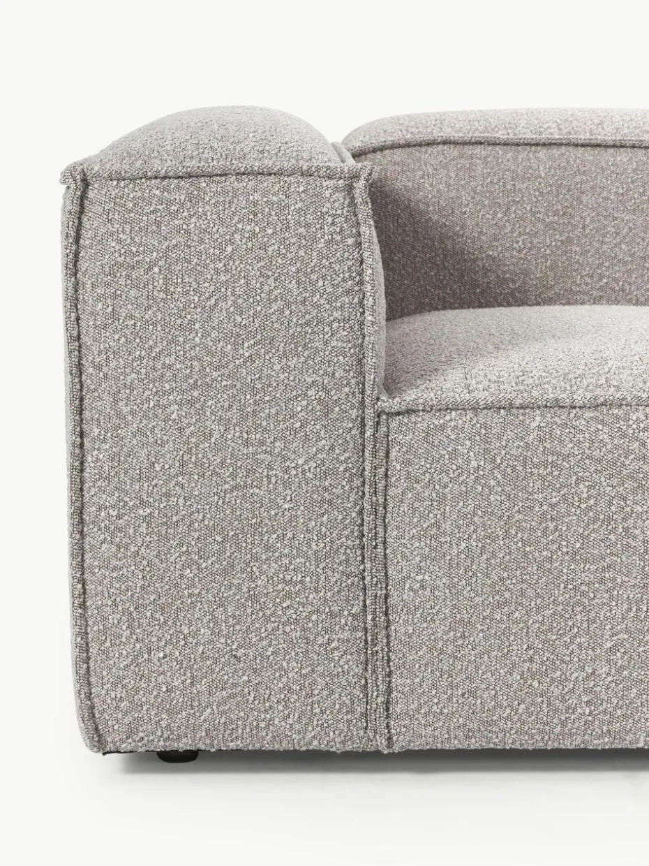 Unsere modulare Sofaserie LENNON ist mit ihren verschiedenen Größen und Elementen die perfekte Wohlfühlinsel für gemütliche Momente zuhause. Ihre Markenzeichen, die niedrigen Arm-und Rückenlehnen sowie ihre weiche und tiefe Sitzfläche, sind perfekt zum Loungen und Entspannen. Das Gestell aus massivem Kiefernholz ist FSC-zertifiziert und auf Langlebigkeit ausgerichtet, eingenähte Schaumpolster mit Taschenfederkern garantieren die charakteristische Form. Dank einem easy Klicksystem kann es nach Belieben erweitert werden.
