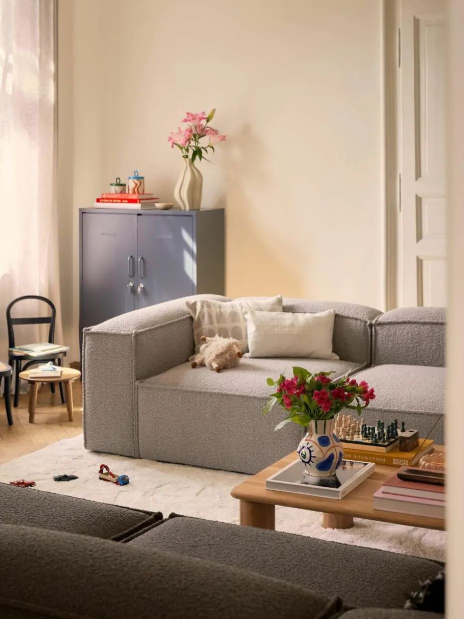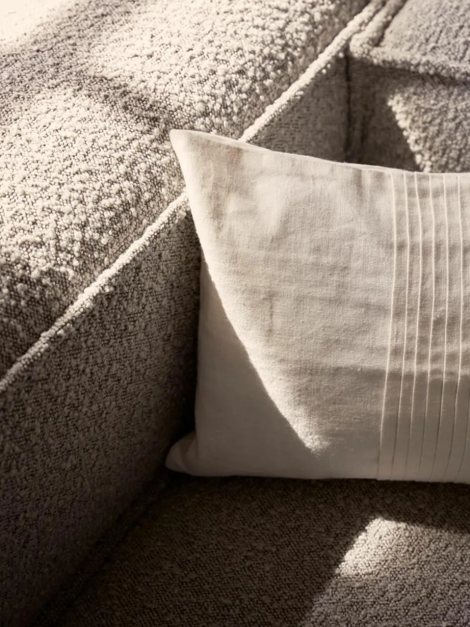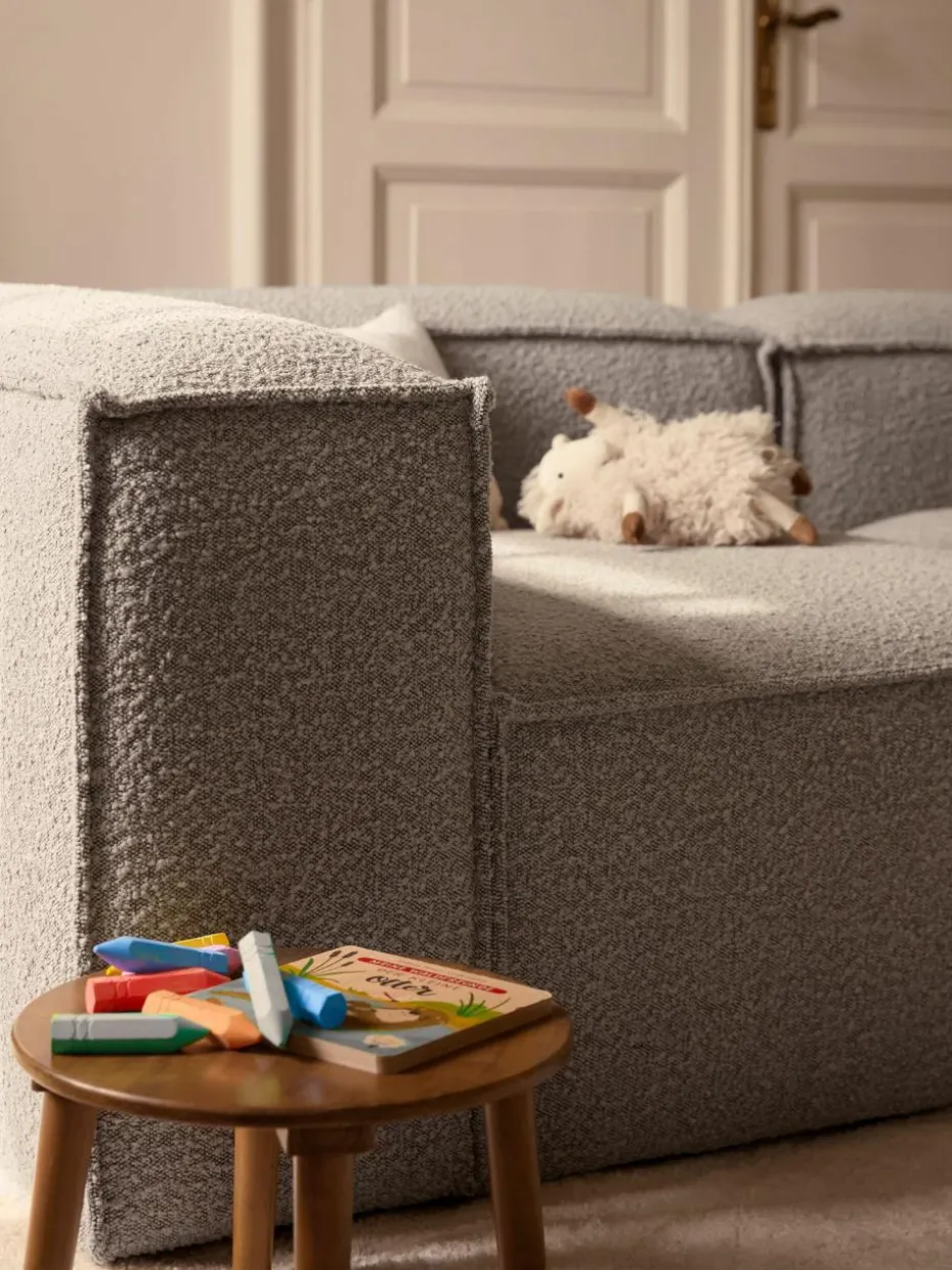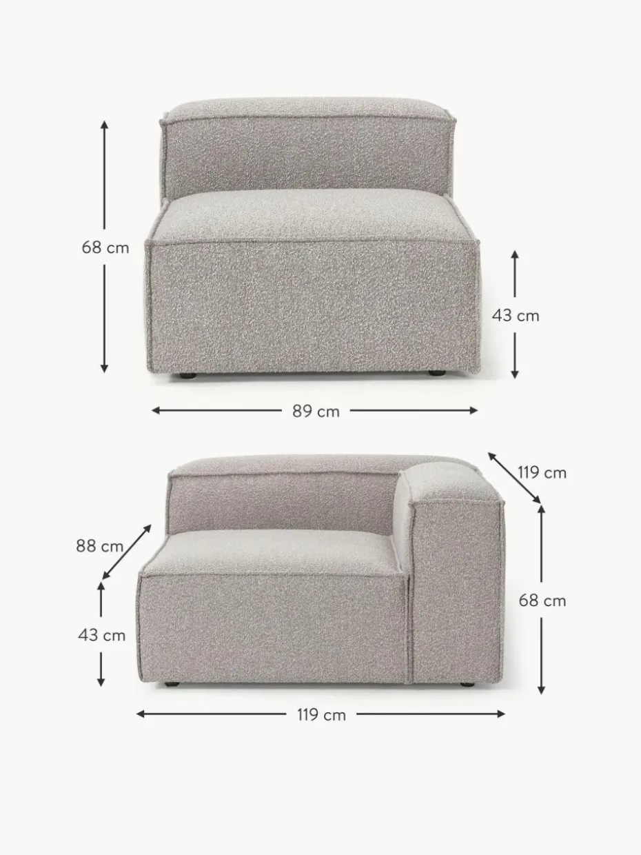 Unsere modulare Sofaserie LENNON ist mit ihren verschiedenen Größen und Elementen die perfekte Wohlfühlinsel für gemütliche Momente zuhause. Ihre Markenzeichen, die niedrigen Arm-und Rückenlehnen sowie ihre weiche und tiefe Sitzfläche, sind perfekt zum Loungen und Entspannen. Das Gestell aus massivem Kiefernholz ist FSC-zertifiziert und auf Langlebigkeit ausgerichtet, eingenähte Schaumpolster mit Taschenfederkern garantieren die charakteristische Form. Dank einem easy Klicksystem kann es nach Belieben erweitert werden.