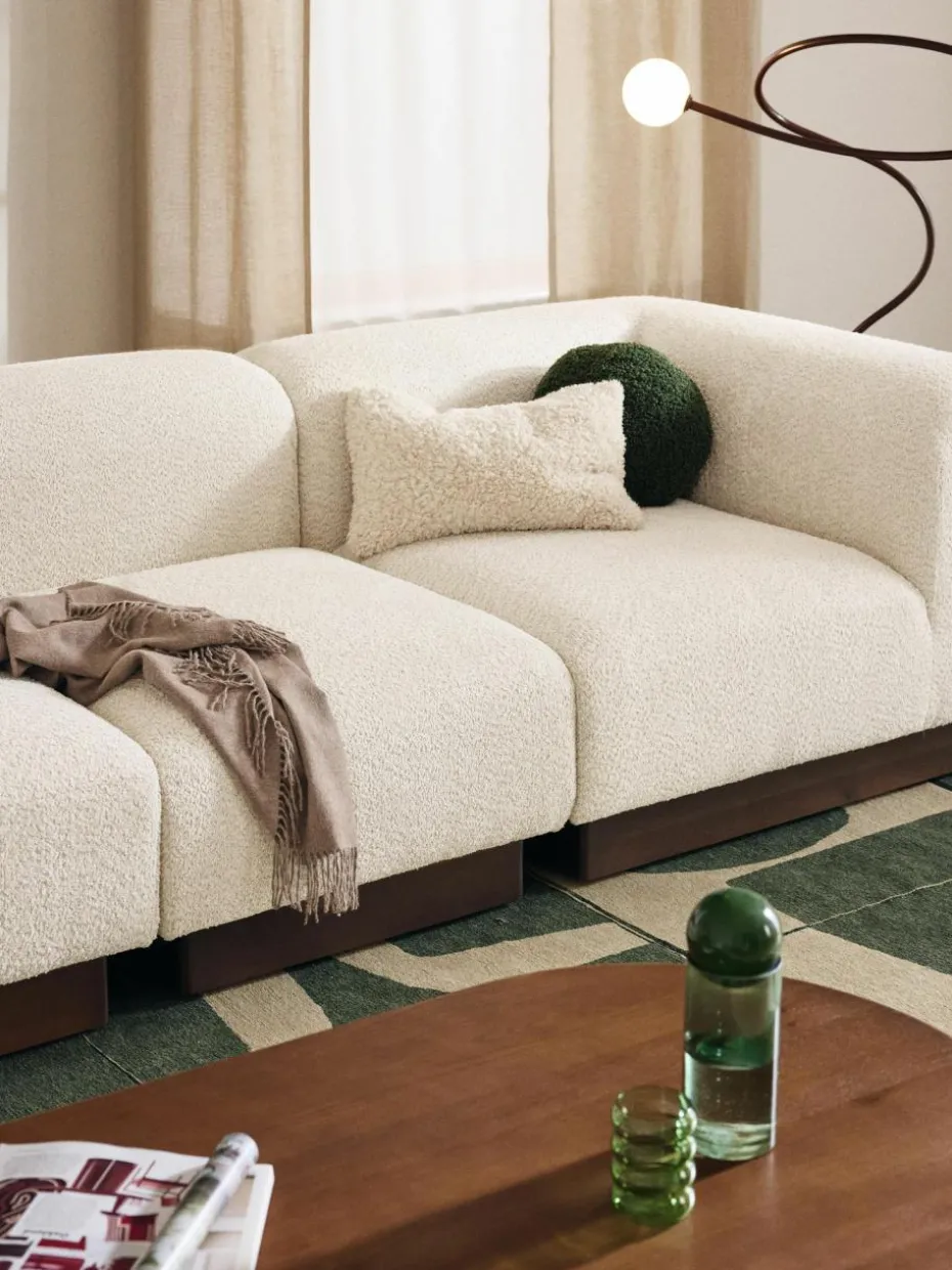 Unser Sofa NATALIE überzeugt durch sanft abgerundete Formen und eine moderne Kombination aus Holz und Stoff. Der minimalistische Holzsockel verleiht dem Sofa Stabilität, während die weichen Polster optimalen Sitzkomfort bieten. Dank des modularen Designs kannst Du NATALIE flexibel erweitern und an Deine individuellen Bedürfnisse anpassen. Dieses stylische Sofa ist ideal für alle, die eine stilvolle und zugleich komfortable Lösung für ihr Wohnzimmer suchen!