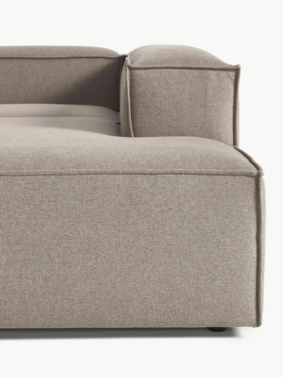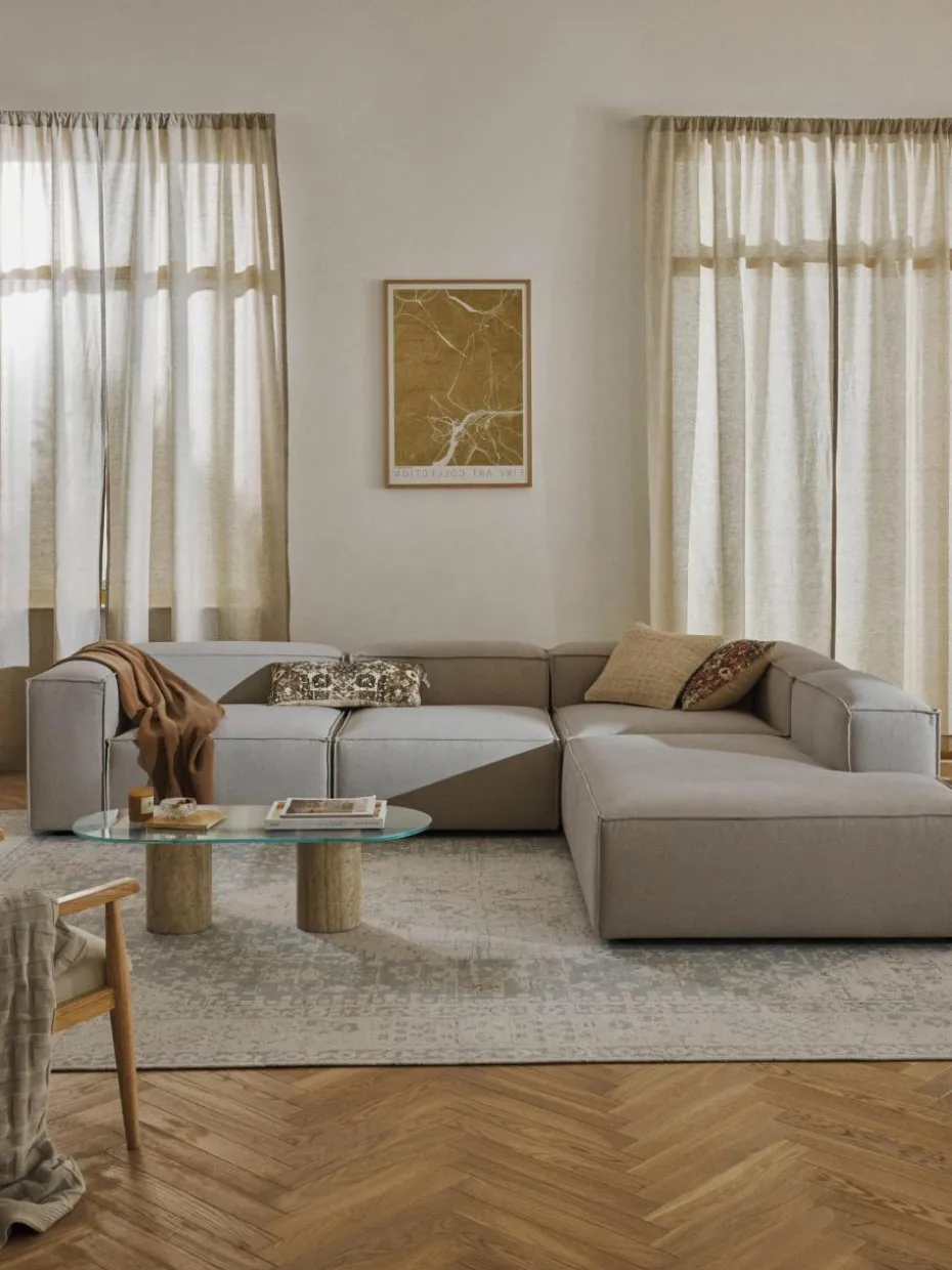 Unsere modulare Sofaserie LENNON ist mit ihren verschiedenen Größen und Elementen die perfekte Wohlfühlinsel für gemütliche Momente zuhause. Ihre Markenzeichen, die niedrigen Arm-und Rückenlehnen sowie ihre weiche und tiefe Sitzfläche, sind perfekt zum Loungen und Entspannen. Das Gestell aus massivem Kiefernholz ist FSC-zertifiziert und auf Langlebigkeit ausgerichtet, eingenähte Schaumpolster mit Taschenfederkern garantieren die charakteristische Form. Dank einem easy Klicksystem kann es nach Belieben erweitert werden.