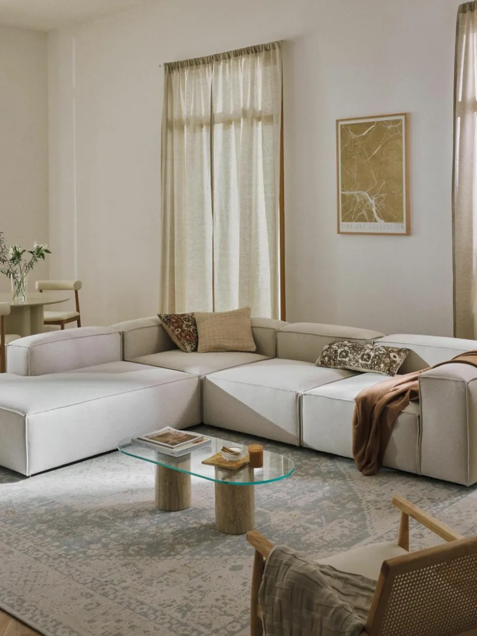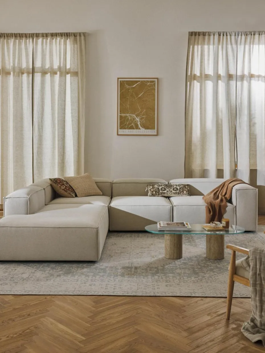 Unsere modulare Sofaserie LENNON ist mit ihren verschiedenen Größen und Elementen die perfekte Wohlfühlinsel für gemütliche Momente zuhause. Ihre Markenzeichen, die niedrigen Arm-und Rückenlehnen sowie ihre weiche und tiefe Sitzfläche, sind perfekt zum Loungen und Entspannen. Das Gestell aus massivem Kiefernholz ist FSC-zertifiziert und auf Langlebigkeit ausgerichtet, eingenähte Schaumpolster mit Taschenfederkern garantieren die charakteristische Form. Dank einem easy Klicksystem kann es nach Belieben erweitert werden.