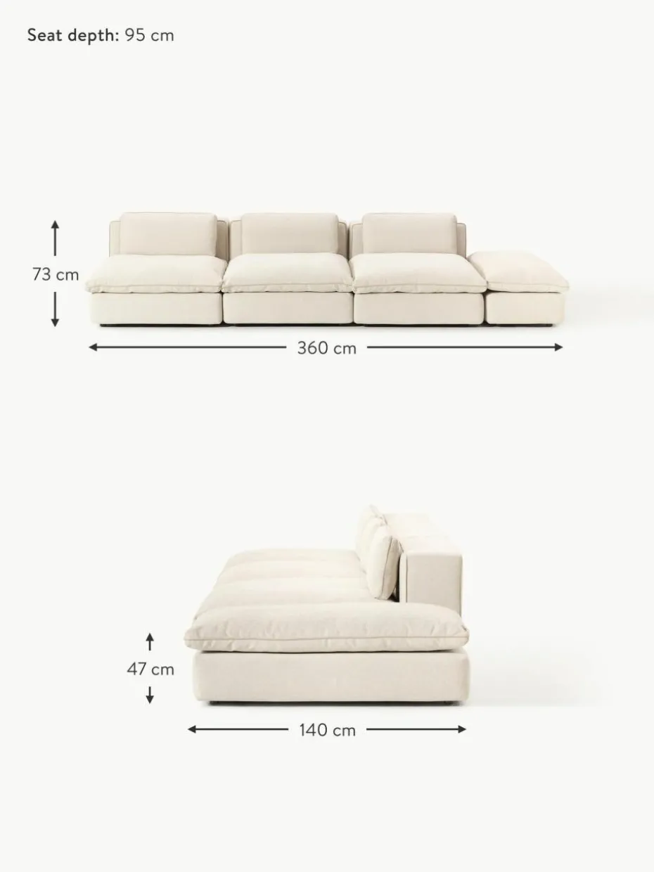 Unser modulares Sofa Felix besteht aus drei Modulen und einem Hocker, welche sich individuell kombinieren lassen.