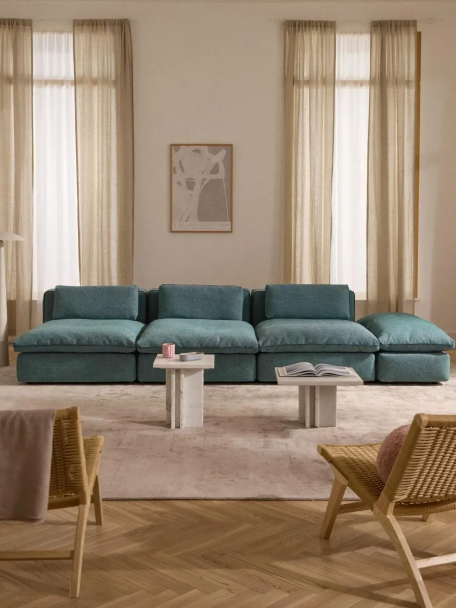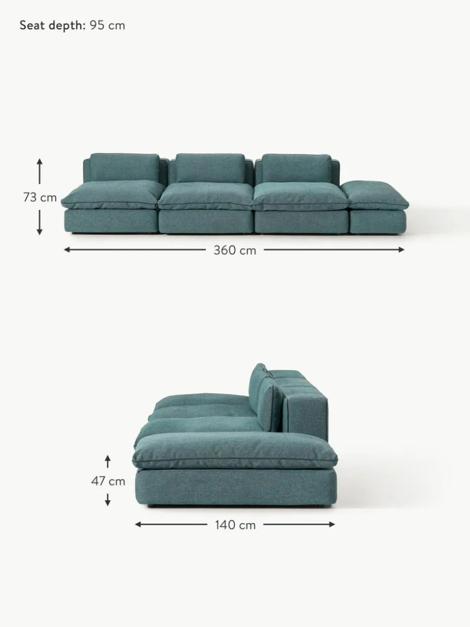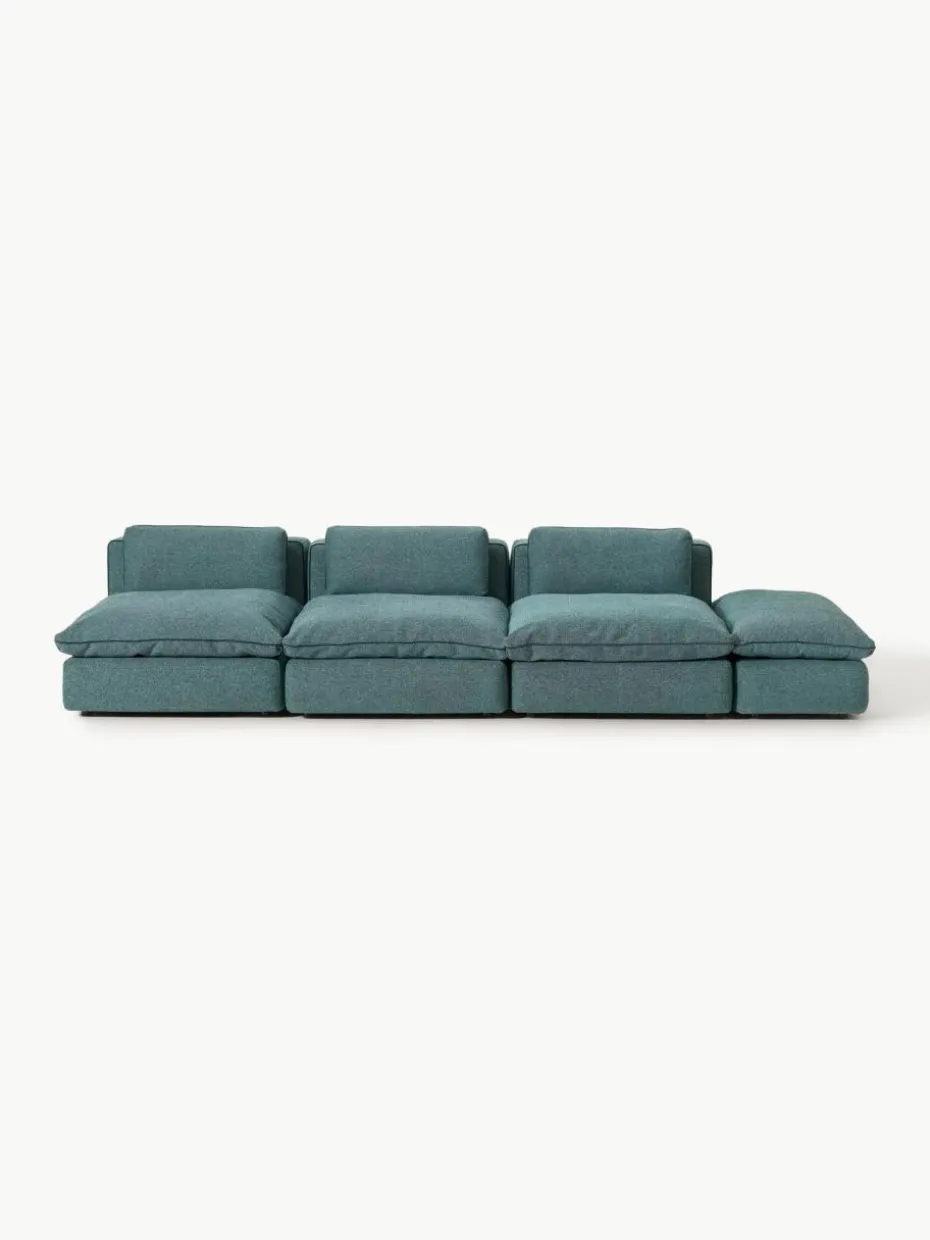 Unser modulares Sofa Felix besteht aus drei Modulen und einem Hocker, welche sich individuell kombinieren lassen.
