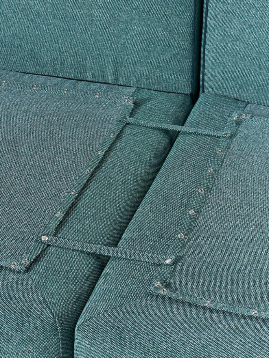 Die einzelnen Module lassen sich dank der Verbindungsbänder und Druckknöpfe an der Oberseite der Module flexibel kombinieren.