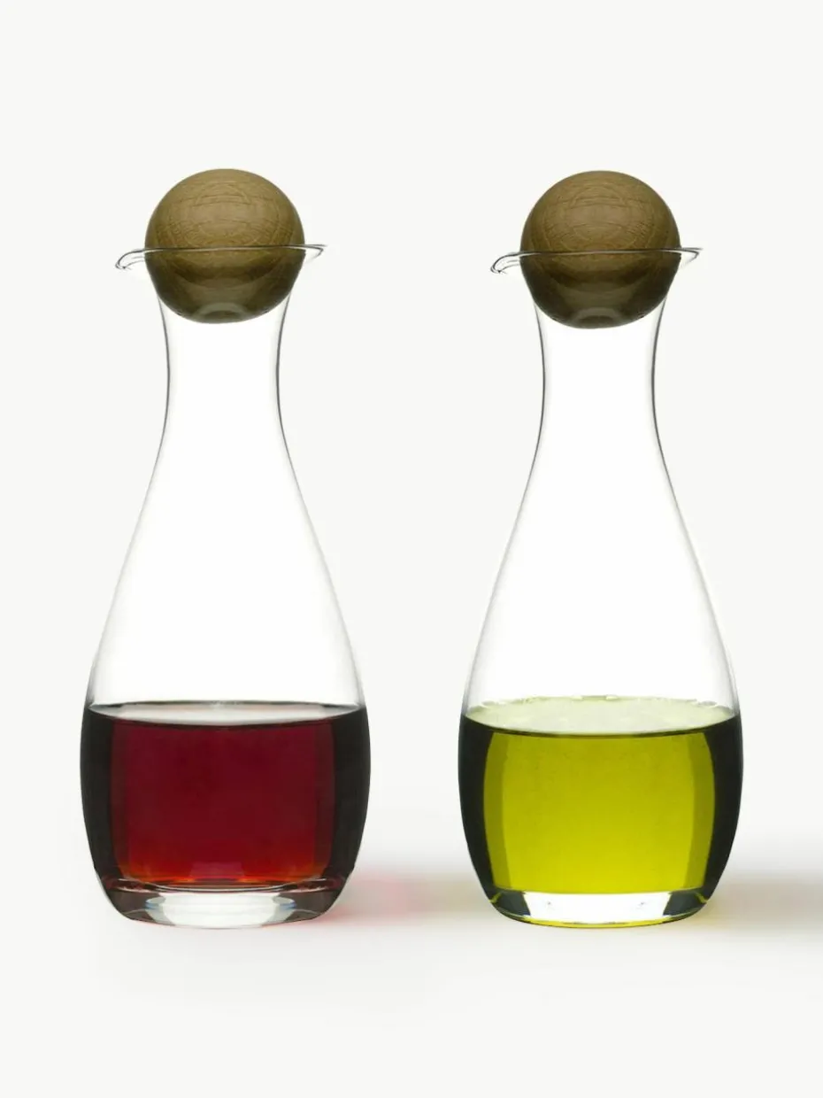 Mundgeblasene Essig- und Öl-Spender Eden mit Holzdeckel, 2er-Set