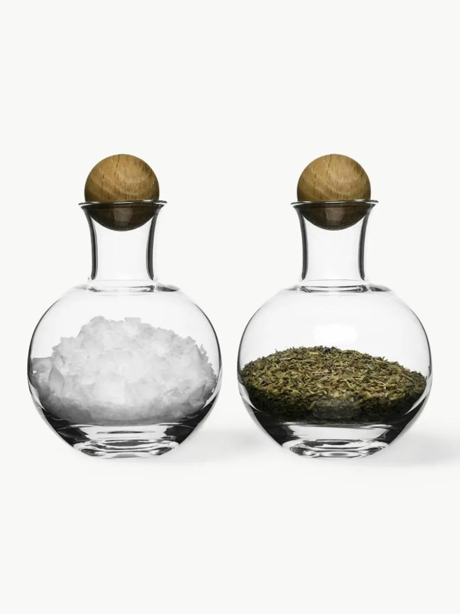 Mundgeblasene Gewürzflaschen Eden mit Holzdeckel, 2er-Set