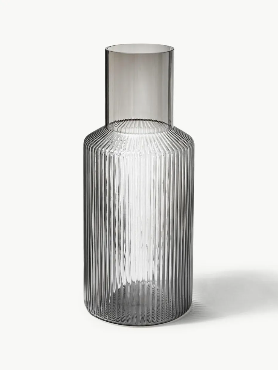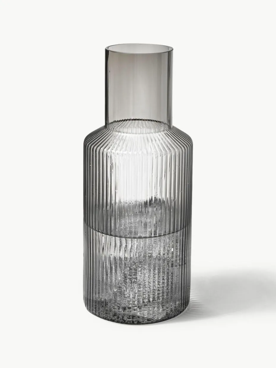 Mundgeblasene kleine Karaffe Ripple mit Wasserglas, 2er-Set