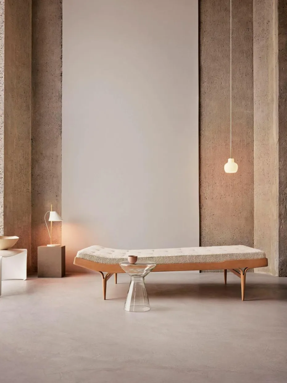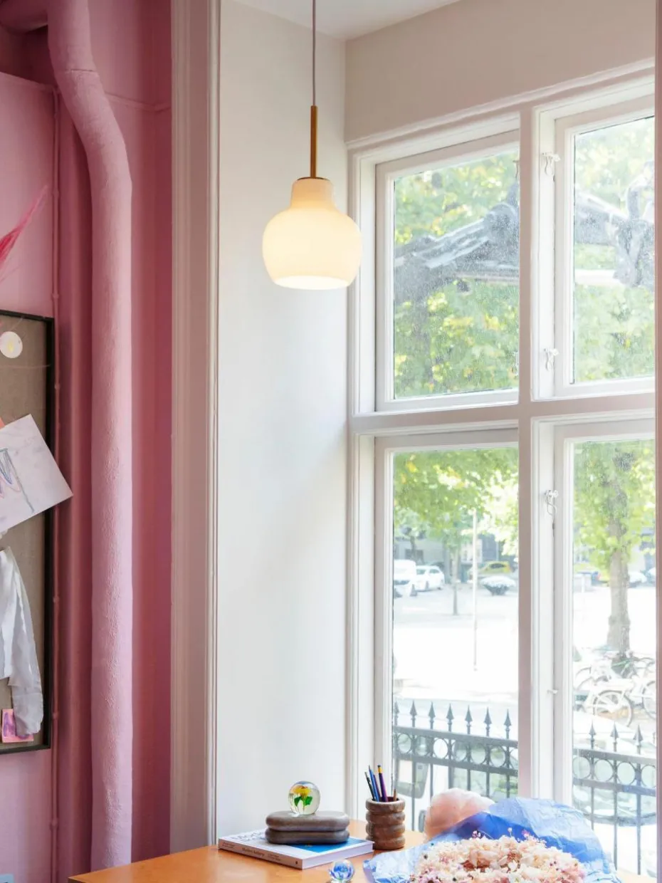 Die Produktreihe VL Ring Crown basiert auf Vilhelm Lauritzens Original-Leuchtendesigns, die er in den 1930er Jahren für das Radiohuset – das dänische Rundfunkgebäude – in Kopenhagen entworfen hatte. Die VL Ring Crown Pendelleuchte strahlt direktes, richtungsbestimmtes Licht ab und erzeugt durch den Schirm aus weißem Opalglas gleichzeitig einen angenehm warmen Lichtschein.