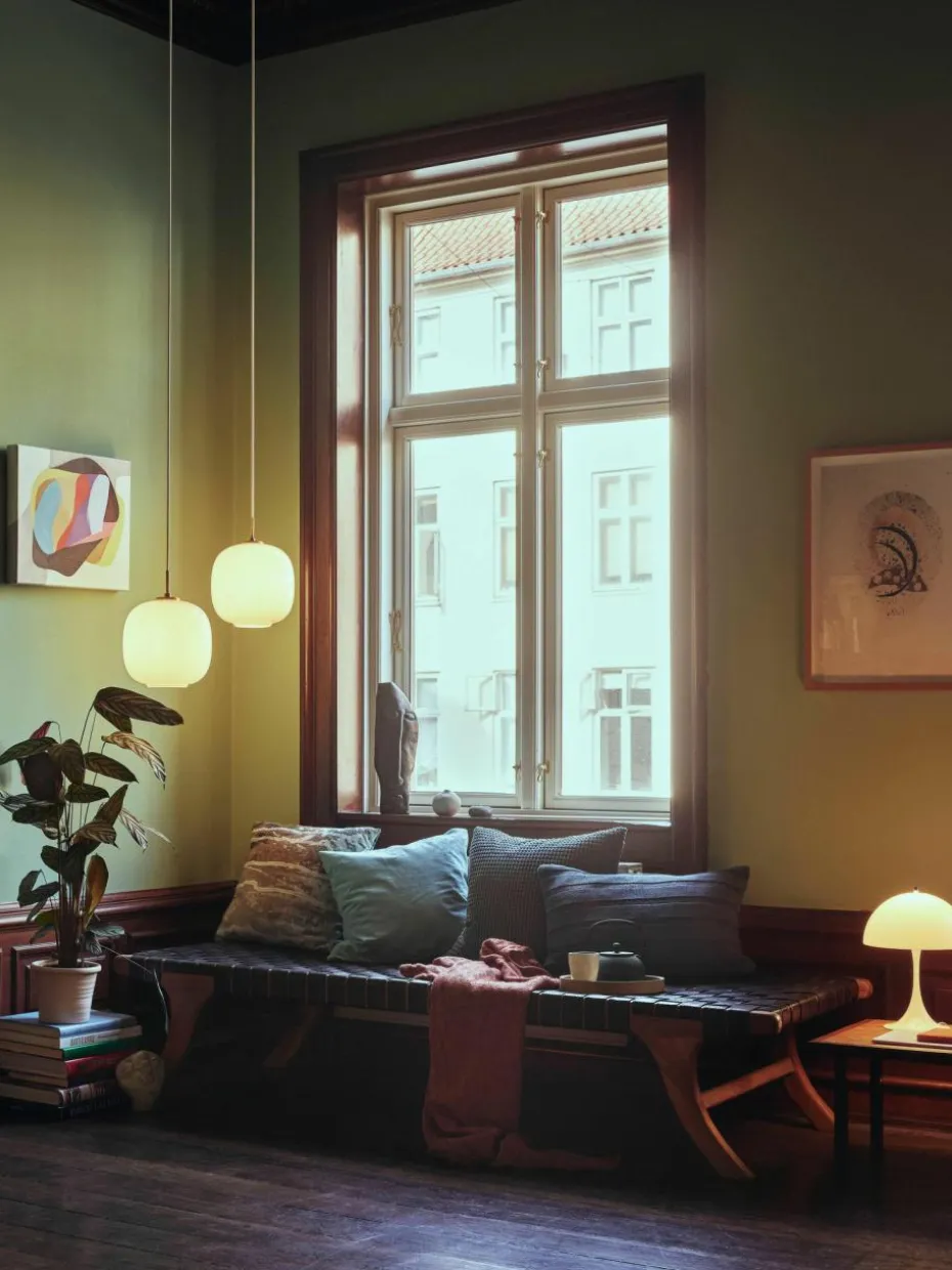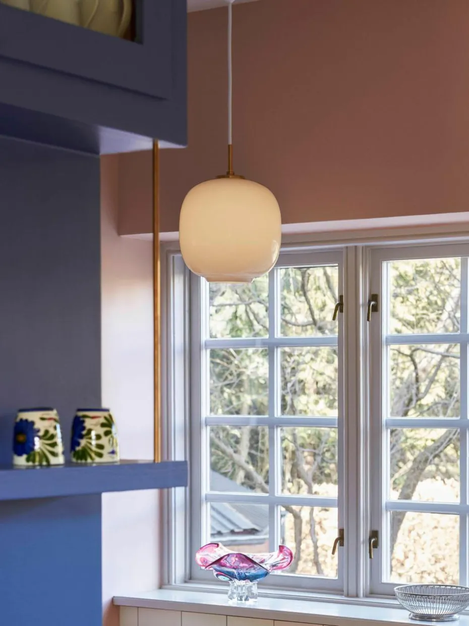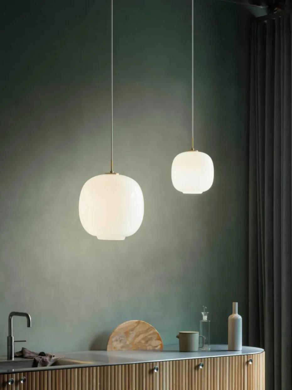 Die Pendelleuchte wurde 2016 als VL45 Radiohus Pendelleuchte wieder eingeführt. Schirm aus dreischichtigem mundgeblasenen Glas sorgt für gleichmäßigen, weichen Lichtschein. Durch die Öffnung des Glasschirms wird das Licht direkt nach unten abgestrahlt.