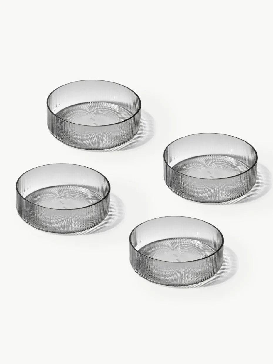 Mundgeblasene Servierschälchen Ripple mit Rillenstruktur, 4 Stück