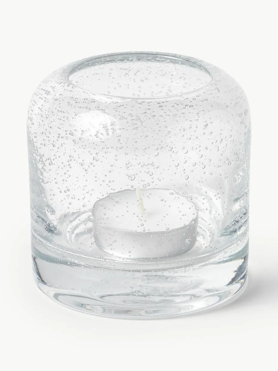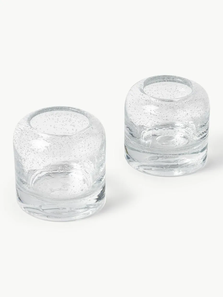 Mundgeblasene Teelichthalter Dylla mit Luftbläschen, 2er-Set