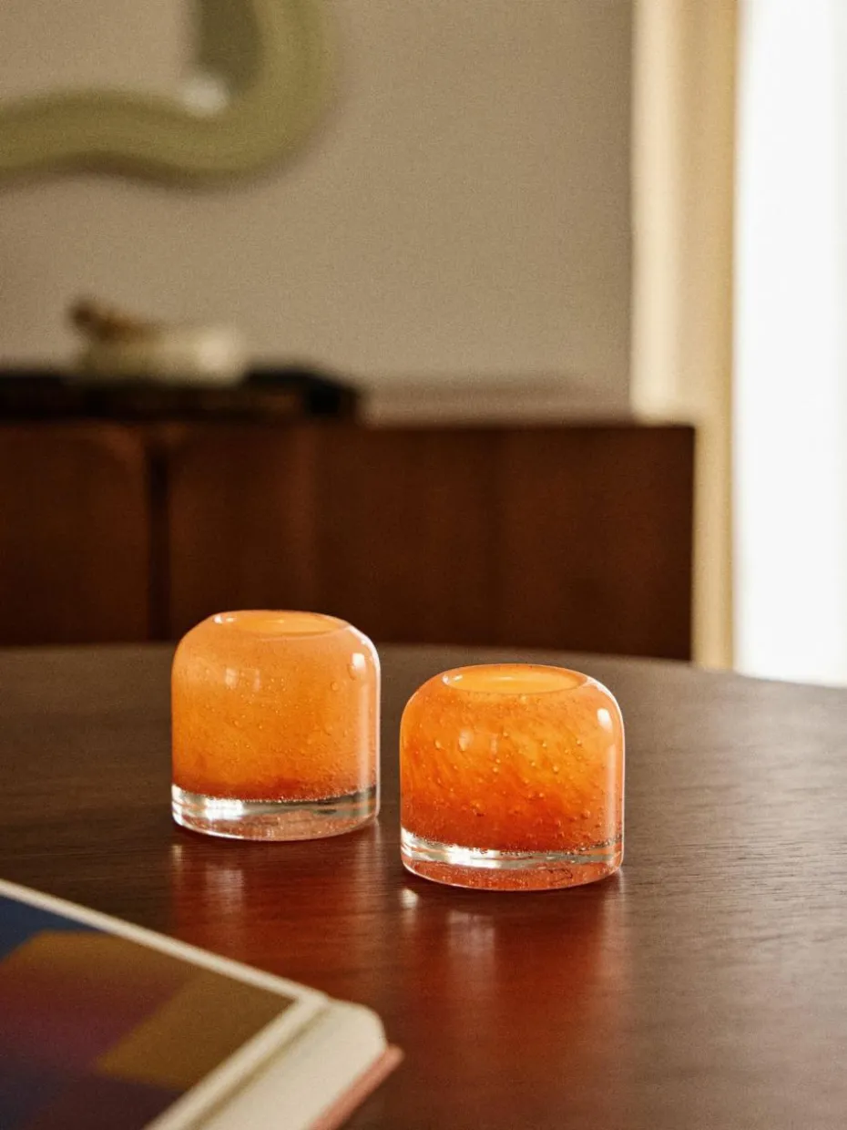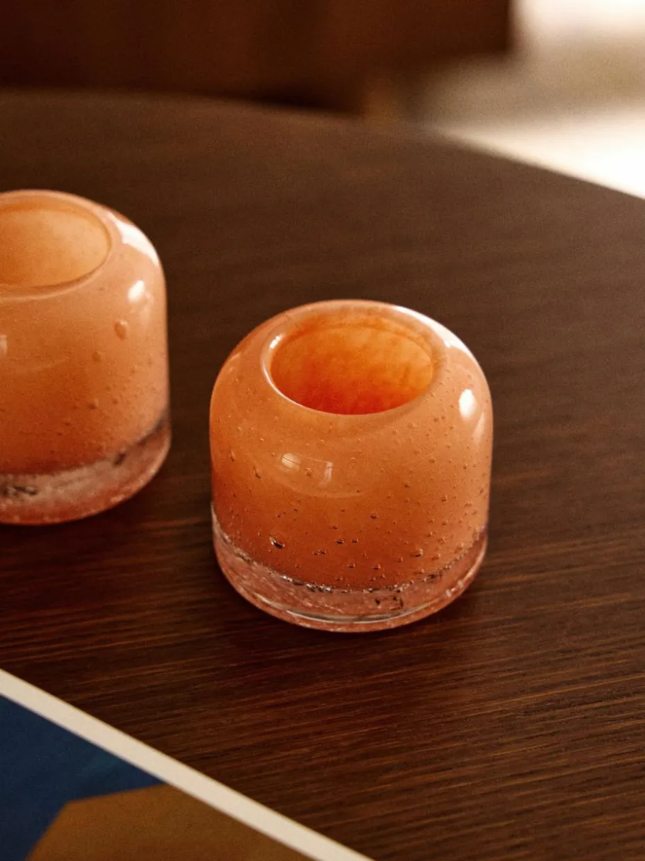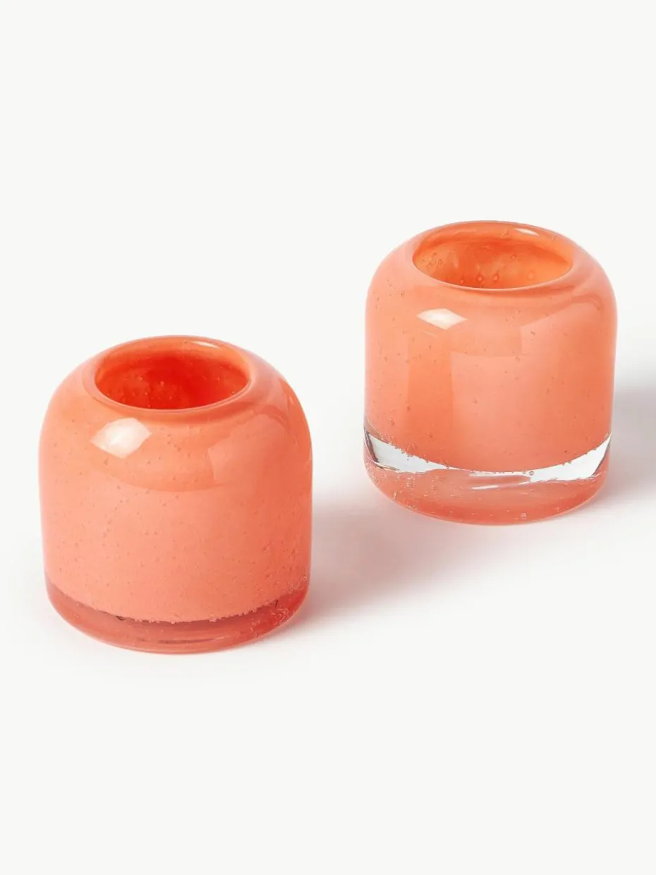Mundgeblasene Teelichthalter Dylla mit Luftbläschen, 2er-Set