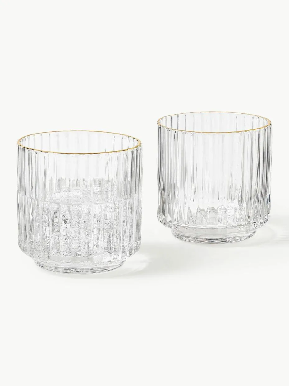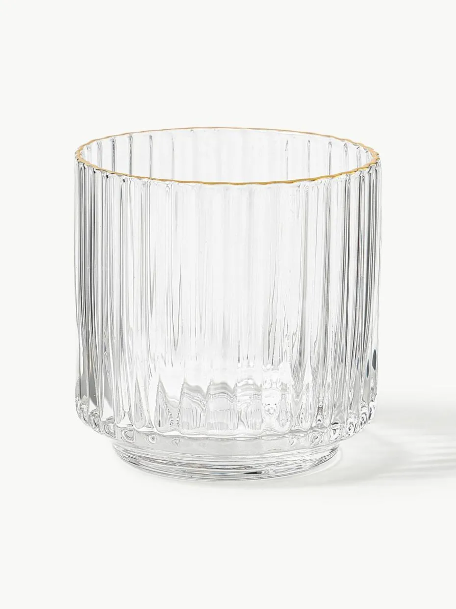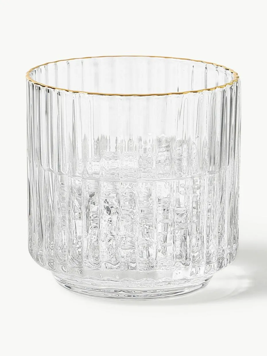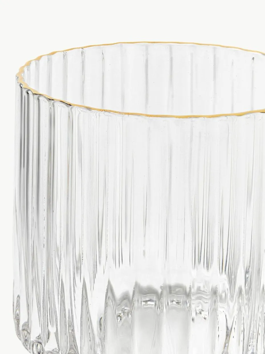 Mundgeblasene Wassergläser Aleo mit goldfarbenem Rand, 4 Stück