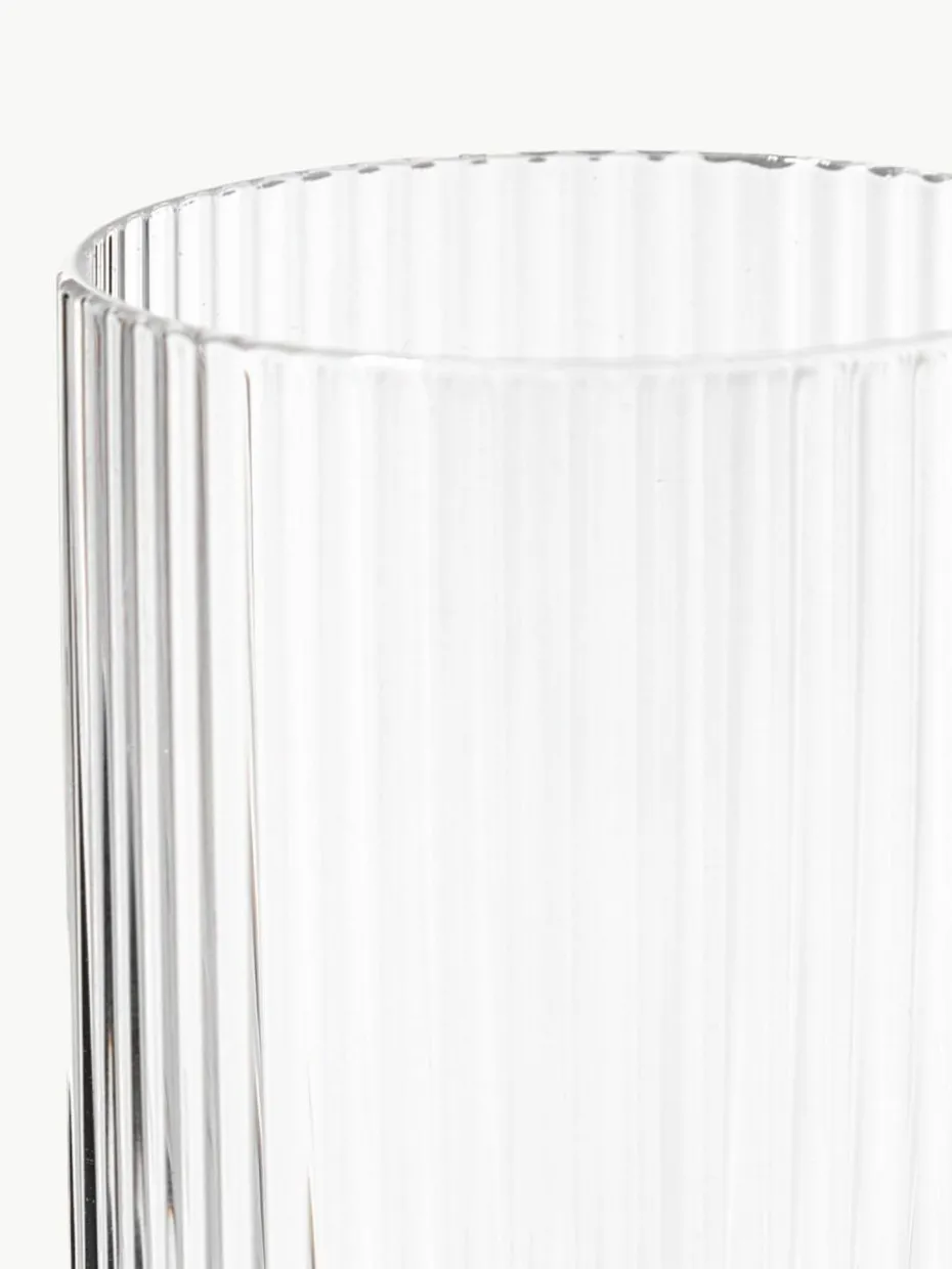 Die RIPPLE Serie vereint zeitloses Design mit skandinavischer Eleganz. Jedes Glas ist aufwendig mundgeblasen und zeichnet sich durch seine geriffelte Oberfläche aus, die nicht nur optisch beeindruckt, sondern auch für eine angenehme Haptik sorgt. Die schlanken und zugleich robusten Formen der Gläser verleihen Deinem gedeckten Tisch einen modernen und stilvollen Ausdruck. Ob für den Alltag oder besondere Anlässe – die RIPPLE Gläser sind vielseitig einsetzbar und setzen Getränke perfekt in Szene. Kombiniere sie mit anderen Stücken aus der RIPPLE Serie, um ein harmonisches Gesamtbild zu schaffen.
