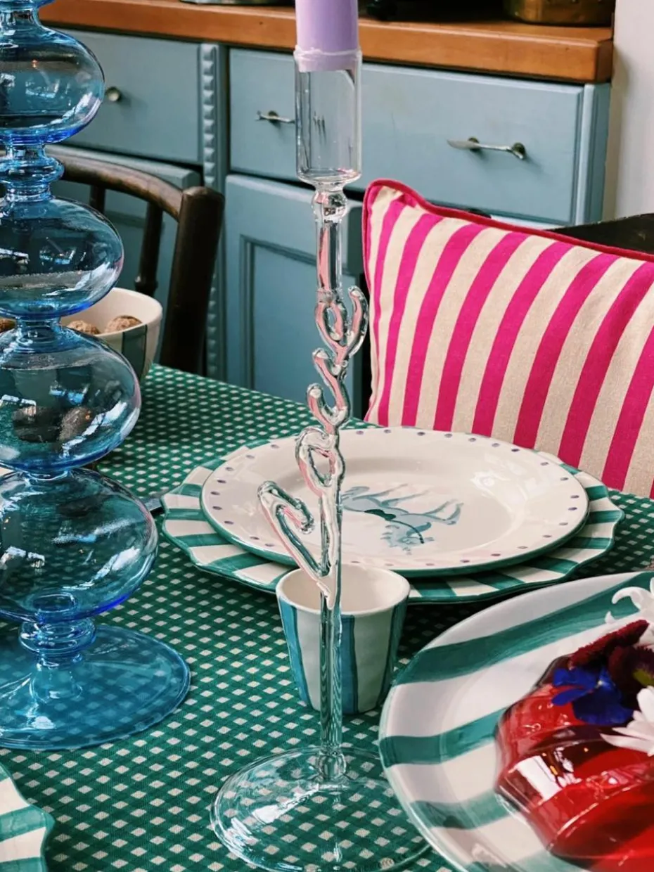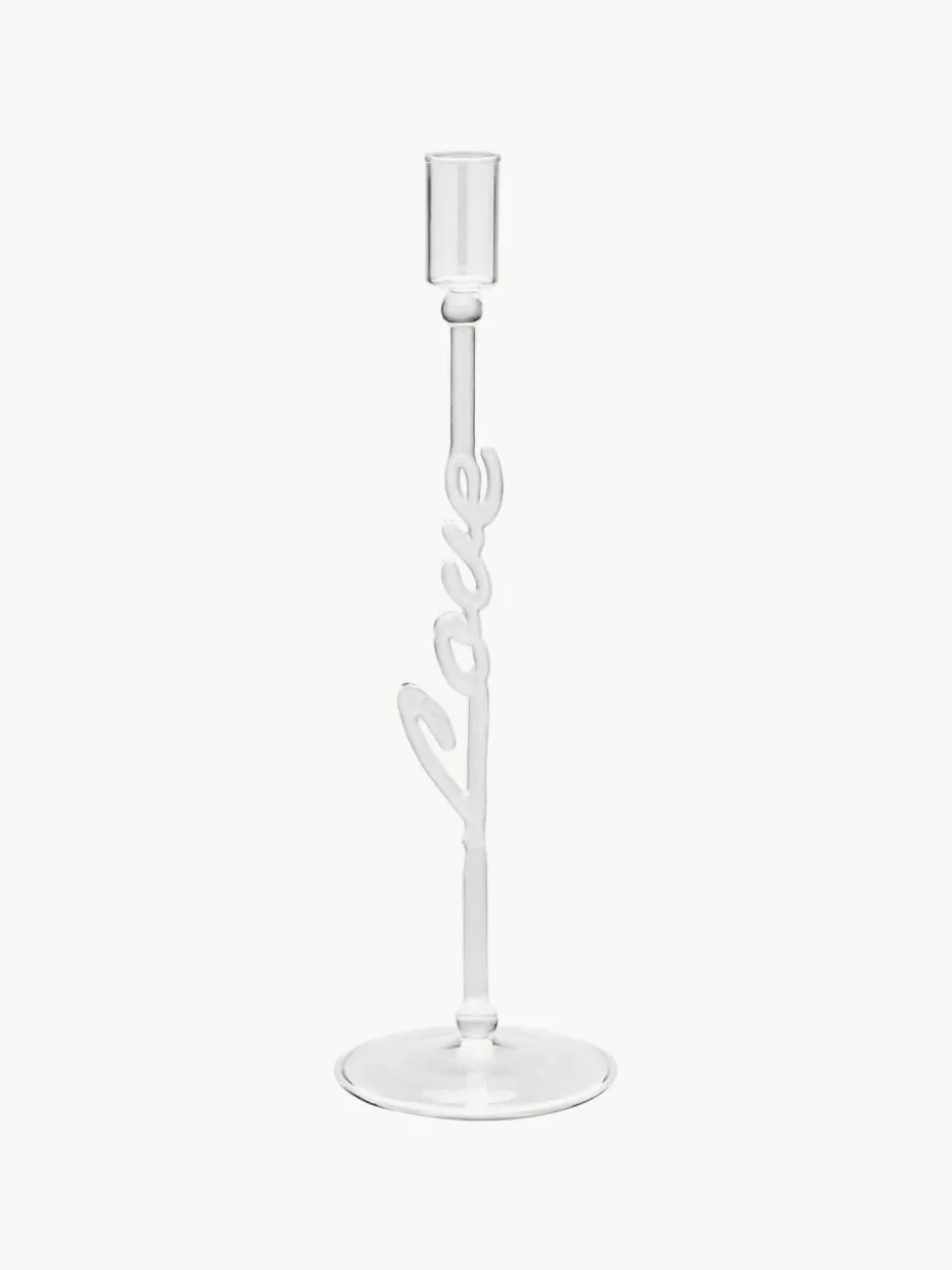 Mundgeblasener Kerzenhalter Love aus Borosilikatglas