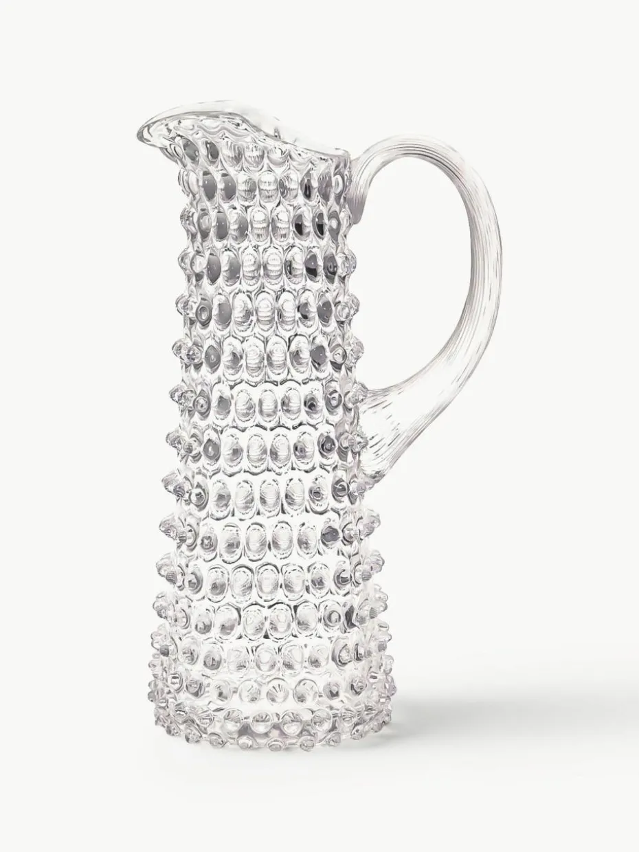 Der Eiffel Krug in der traditionellen Hobnail-Struktur ist ein elegantes Stück, mundgeblasen und handgefertigt von Profis mit jahrzehntelanger Erfahrung. Ob für Wein, Wasser oder Blumen – oder einfach nur als Dekoration – er ist mit Sicherheit ein Blickfang in jedem Haushalt.