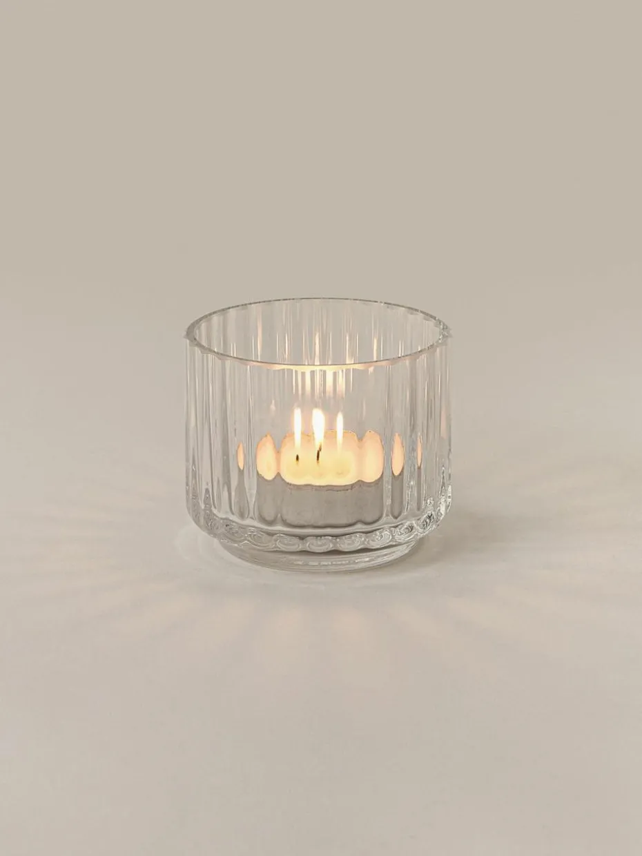 Mundgeblasener Teelichthalter Lyngby mit geriffelter Oberfläche