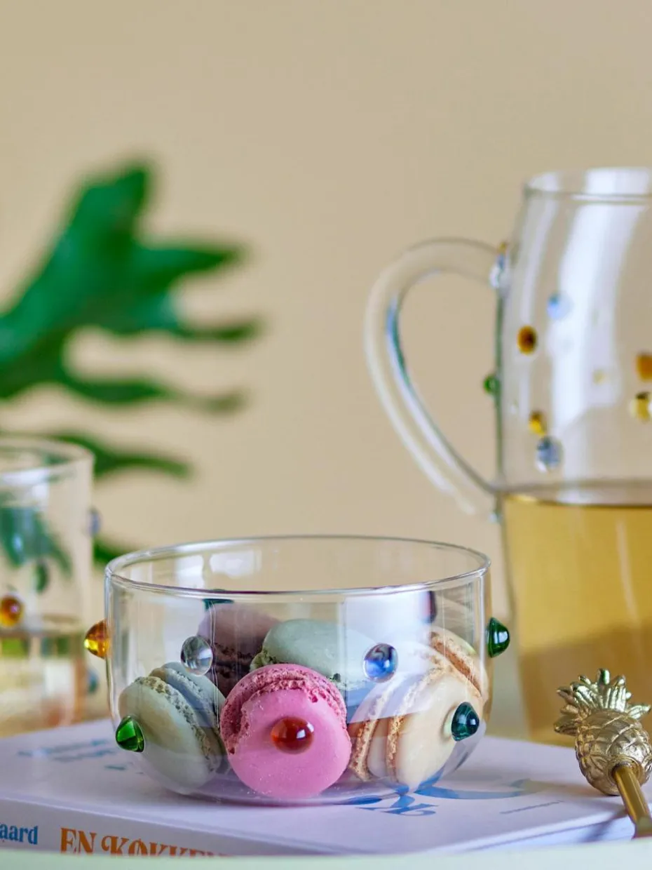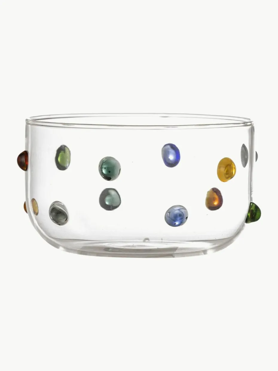 Das Schälchen THALIA von Bloomingville verleiht Deiner Tischdekoration einen festlichen Akzent. Mundgeblasen und mit wunderschönen Glastropfen verziert, bringt jedes Schälchen einen charmanten und fröhlichen Ausdruck in Dein Zuhause. Nutze das Schälchen für den Alltag oder setze es als Mittelpunkt bei besonderen Anlässen am Esstisch ein.“,“pdp_care_label“:“Spülmaschinengeeignet