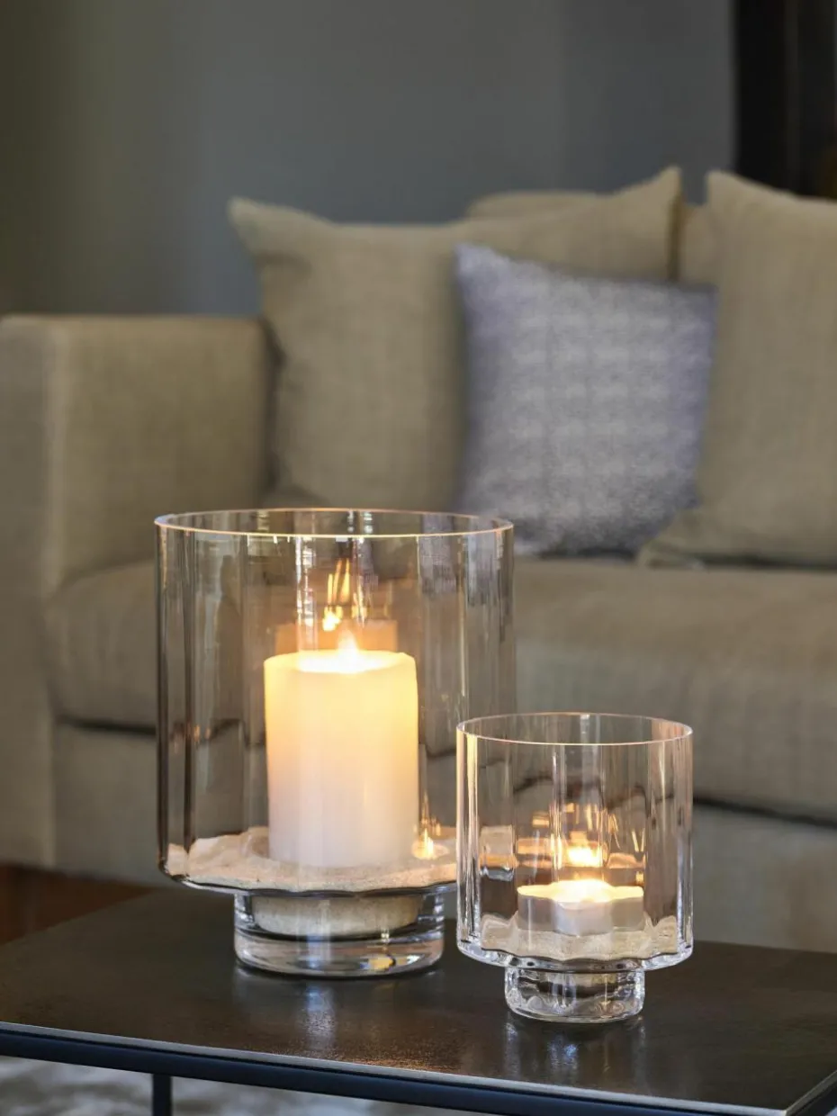 Windlichter gehören mittlerweile zur Grundausstattung jeder Wohnung, verschönern sie doch dekorativ jedes Ambiente und strahlen mit Kerzenlicht Behaglichkeit und Wärme aus. Die mundgeblasenen Tagliare Windlichter wurden mit einer breiten Optik versehen, die das Kerzenlicht besonders eindrucksvoll seine Umgebung erhellen lässt. Mit seinem schmaleren Fuß wirkt Tagliare fast so, als würde es schweben. Sowohl auf Sideboards, Couchtischen, als auch als Bodenwindlicht, setzt Tagliare besondere Akzente. In einer Windlicht-Gruppe vervielfältigt sich der helle Schein von Tagliare, der sowohl im Winter, als auch an Sommerabenden eine besondere Atmosphäre schafft.