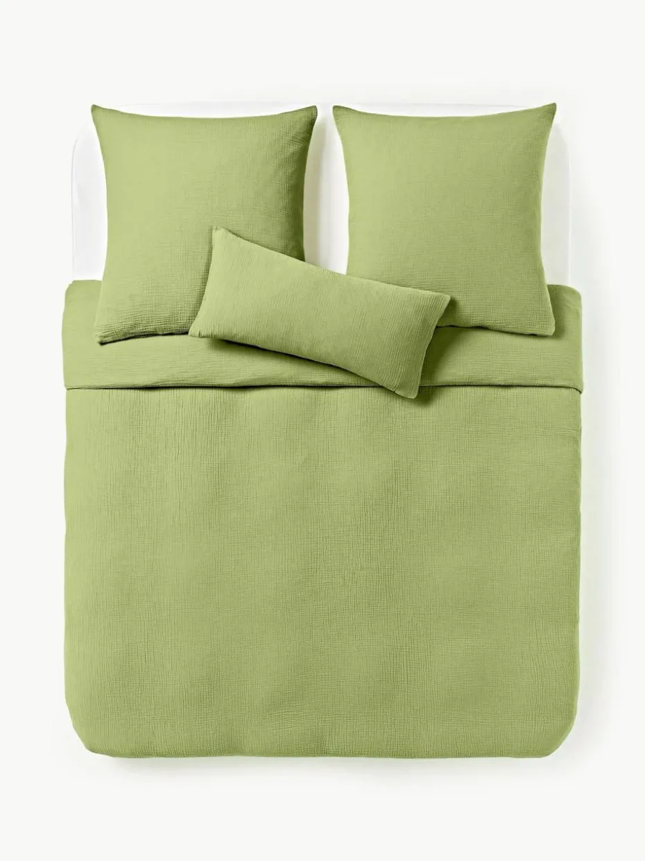 Wer sich ein schnelles Update im Schlafzimmer wünscht, ist mit einer neuen Bettwäsche bestens beraten. Sie ist schnell bezogen und kostet nicht die Welt. Best Buy? Unsere Serie ODILE mit verschiedenen Bettdecken- und Kopfkissenbezügen in vielen Farben und Größen. Wir lieben das softe, locker gewebte Musselin mit kreppartiger Oberfläche – es ist aus nachhaltiger Baumwolle hergestellt, super pflegeleicht und atmungsaktiv. Style meets Funktion, was will man mehr?