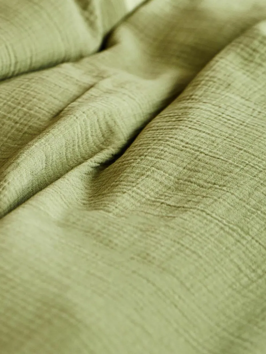 Der Bettdeckenbezug aus Musselin verfügt über einen Knopfverschluss und wurde in Portugal gefertigt.