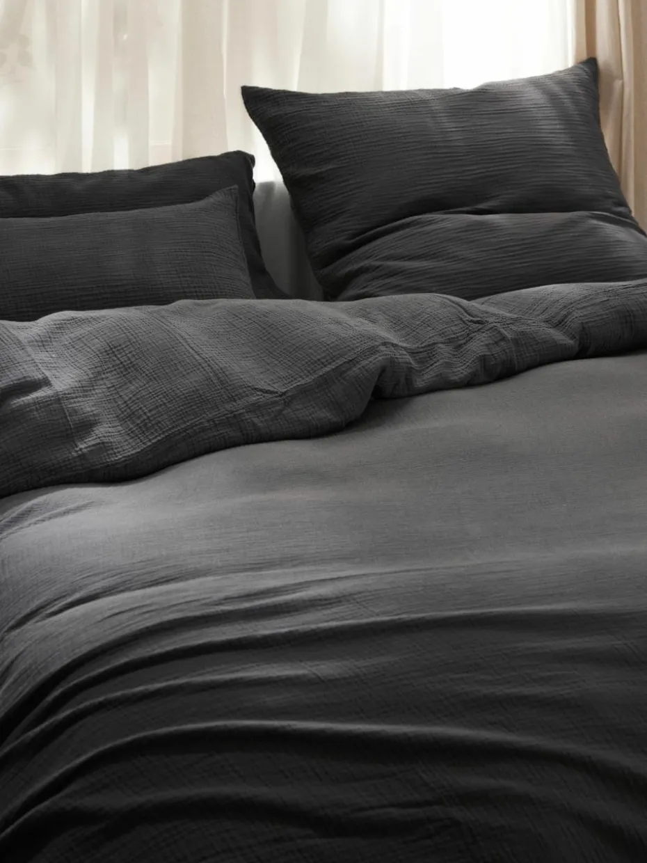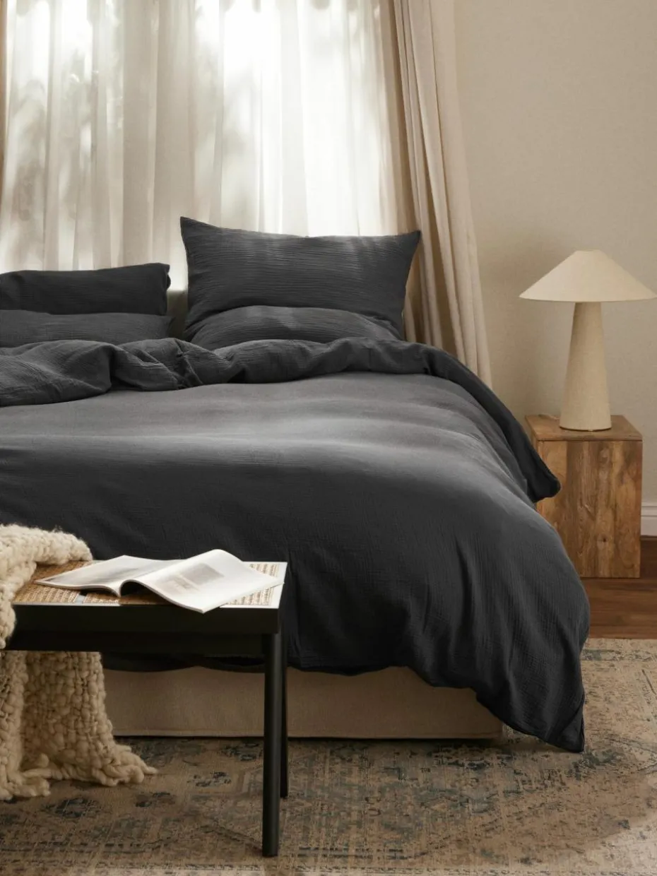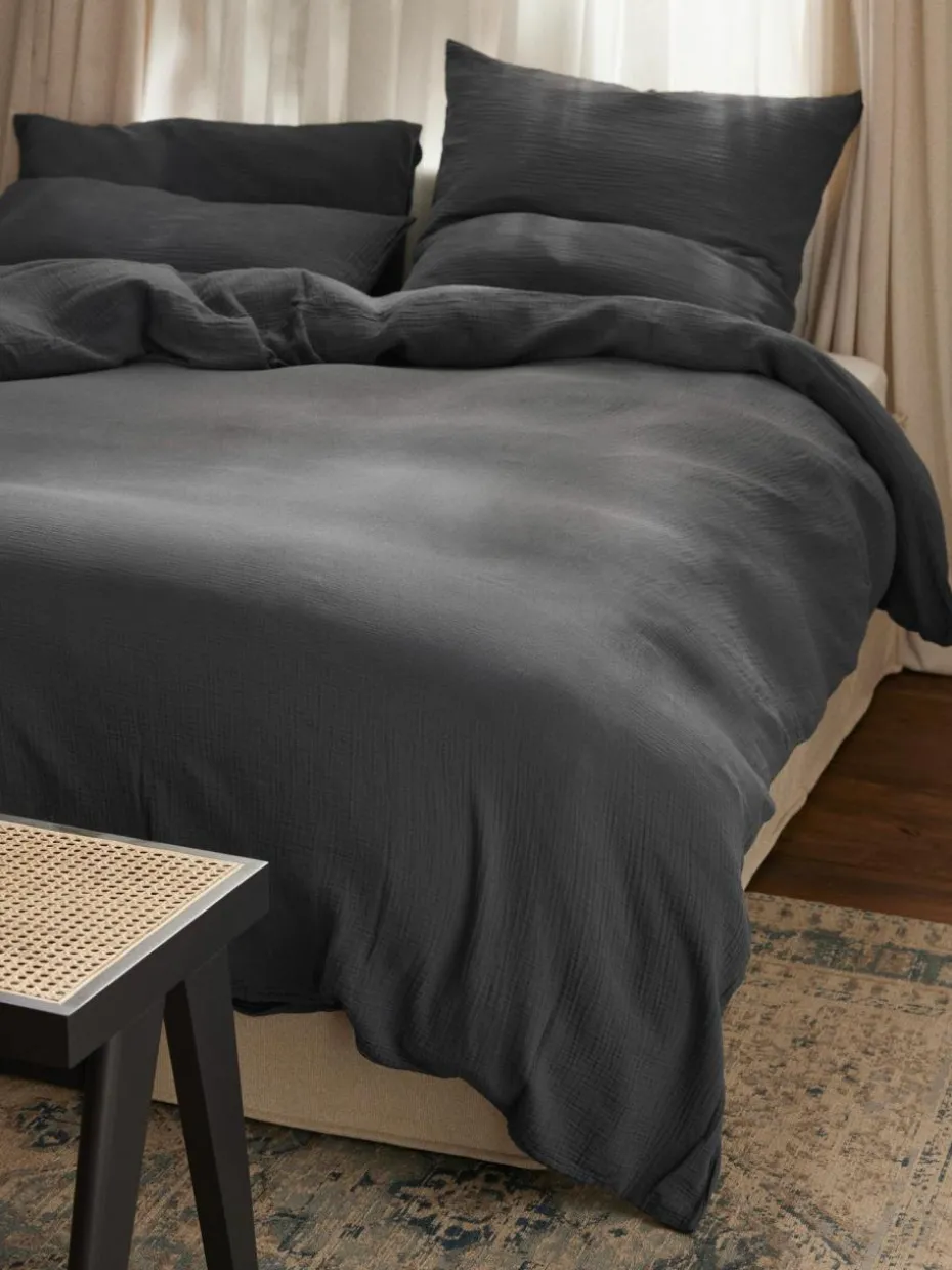 Wer sich ein schnelles Update im Schlafzimmer wünscht, ist mit einer neuen Bettwäsche bestens beraten. Sie ist schnell bezogen und kostet nicht die Welt. Best Buy? Unsere Serie ODILE mit verschiedenen Bettdecken- und Kopfkissenbezügen in vielen Farben und Größen. Wir lieben das softe, locker gewebte Musselin mit kreppartiger Oberfläche – es ist aus nachhaltiger Baumwolle hergestellt, super pflegeleicht und atmungsaktiv. Style meets Funktion, was will man mehr?