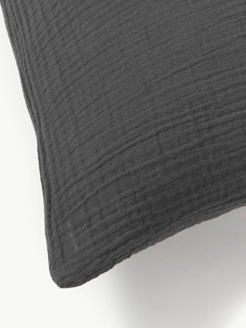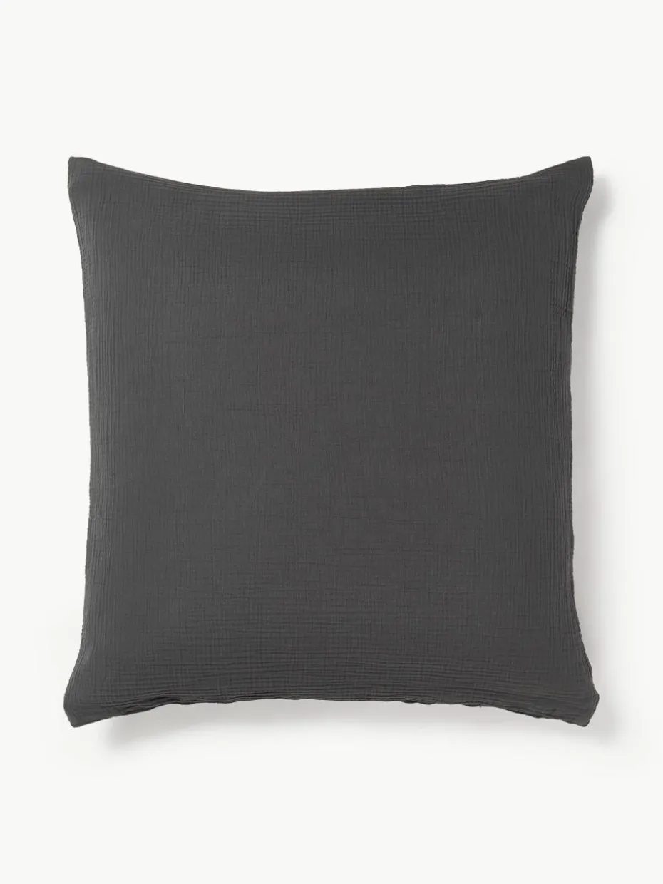 Der Kopfkissenbezug aus Musselin verfügt über einen Knopfverschluss und wurde in Portugal gefertigt.