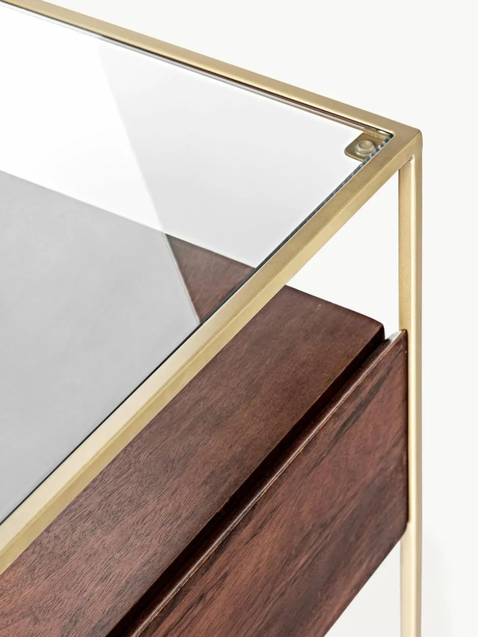 Die Schublade verfügt über einen Soft-Close Mechanismus und lässt sich somit geräuschlos schließen.“,“pdp_care_label“:“Das Produkt wird platzsparend verpackt geliefert – nach Montage der Glasplatte kann es sofort verwendet werden.