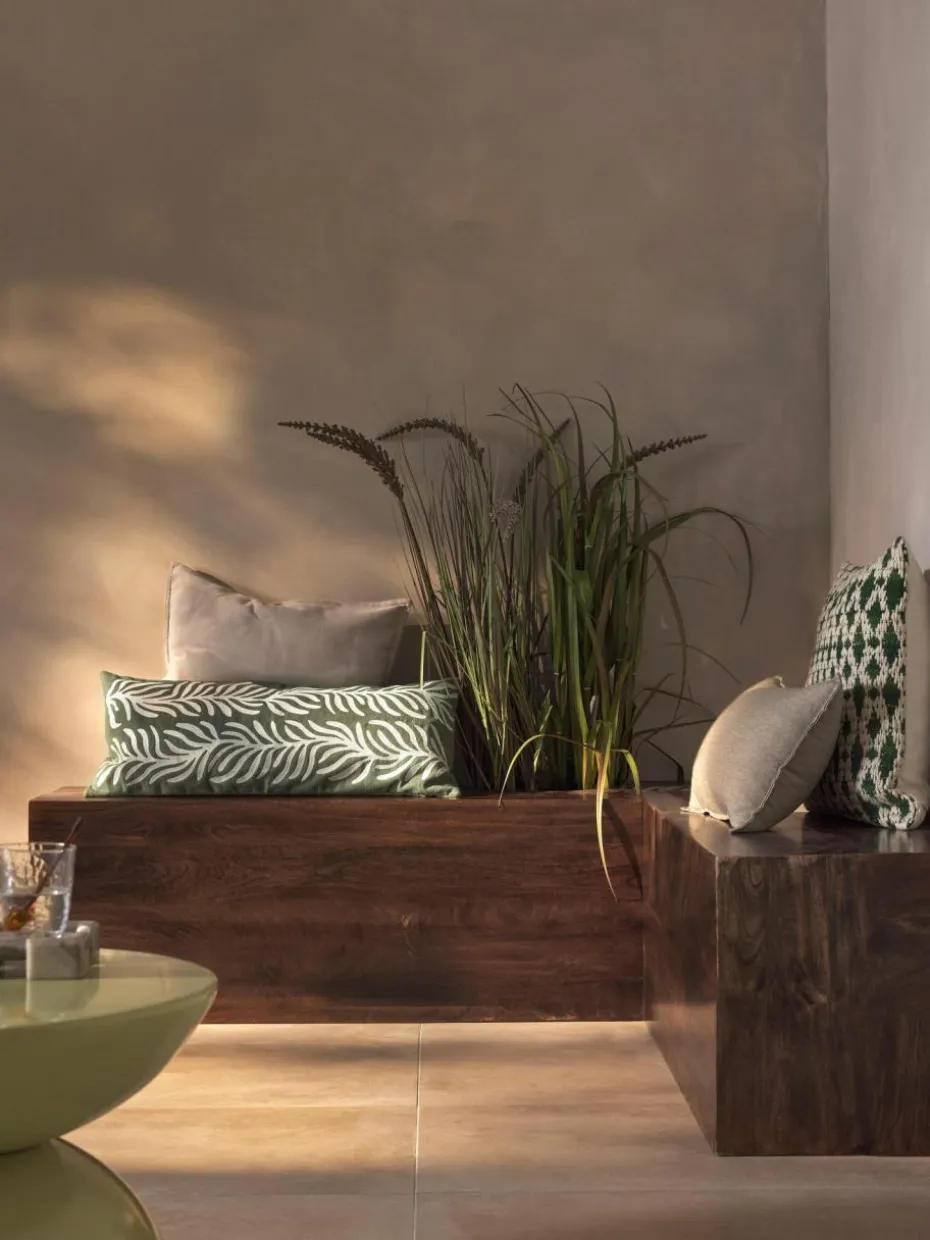 Egal ob auf der Terrasse, dem Balkon oder im Garten: mit Kissen OLINE lässt sich im Handumdrehen ein gemütliches Flair schaffen.